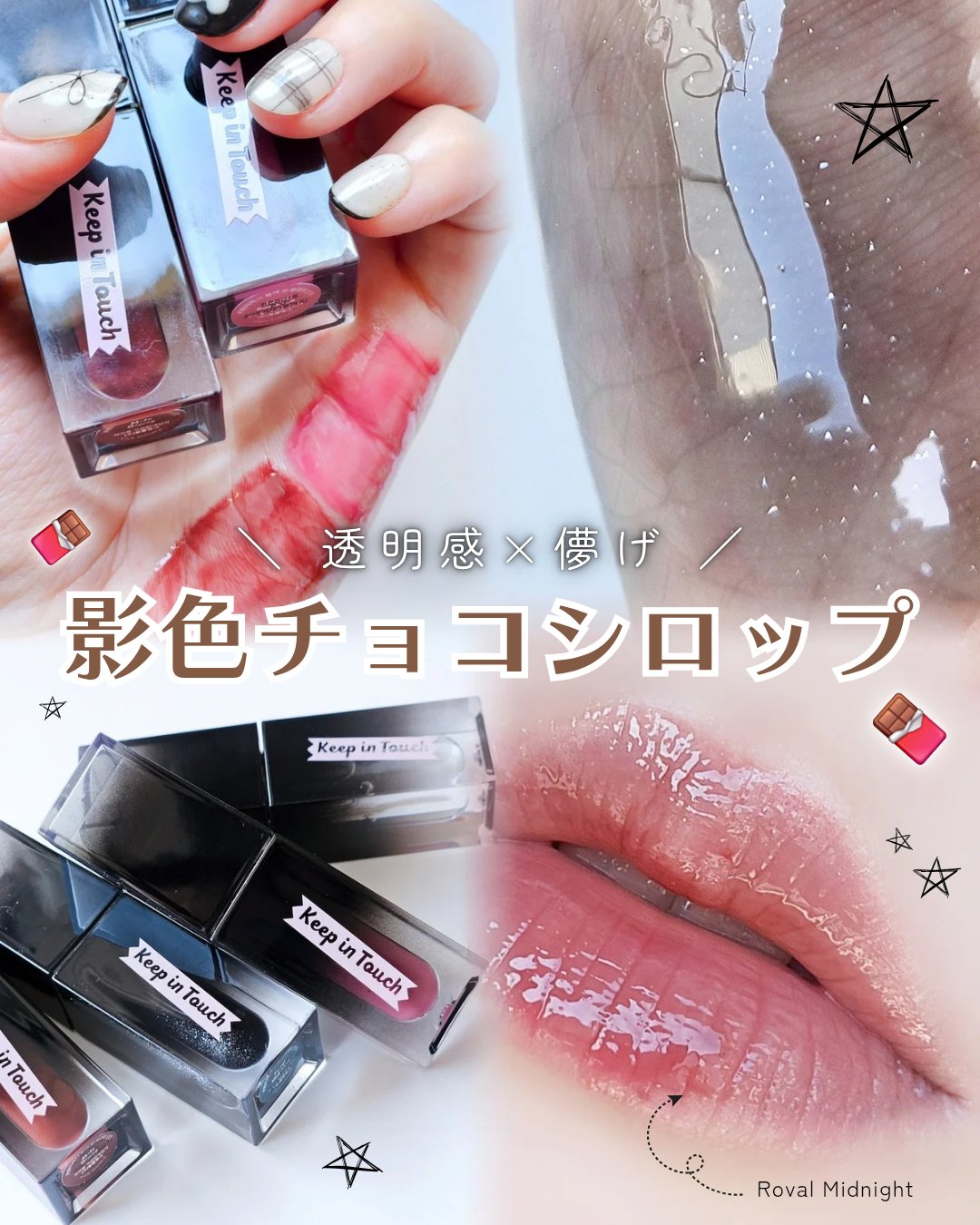 👄.【PR】キープインタッチのザブラックリッププランパーティント4色をお試ししました♡プランパーだけど強すぎないから初心者さんにもオススメ❣️もっちりちゅるん系の仕上がりで、クリアアップとロイヤルミッドナイトはラメ入り✨この2つは手持ちのリッ...
