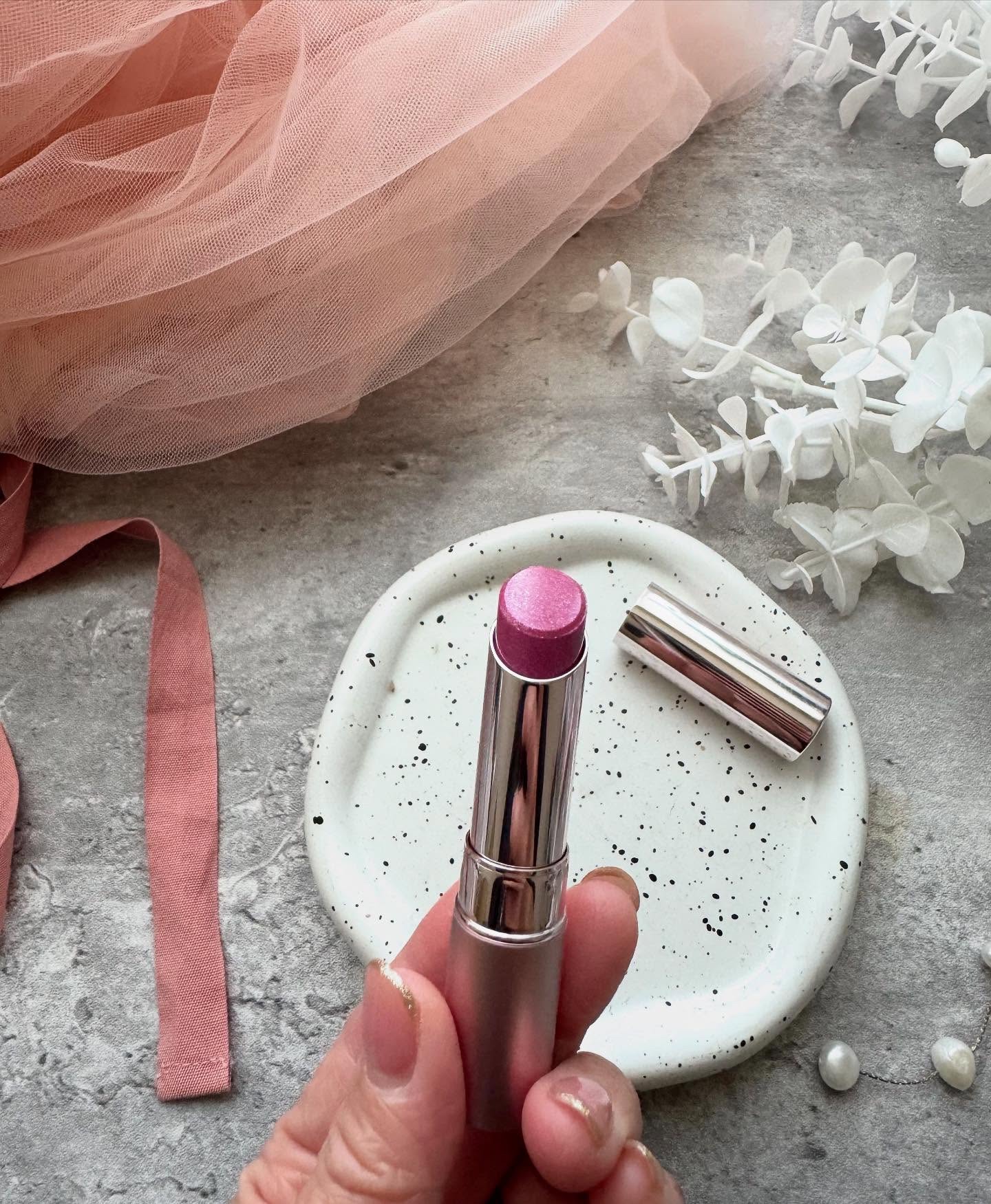 淡いけれど薄くはない、冬のキュートピンクリップという印象です。フロストライラックでほんのり白みとパープル感のあるピンクティント。発色が良くすごく可愛い色ですが大人っぽく甘さは控えめ。絶妙なカラーでこだわって調色してある感じがします。テクスチャ...
