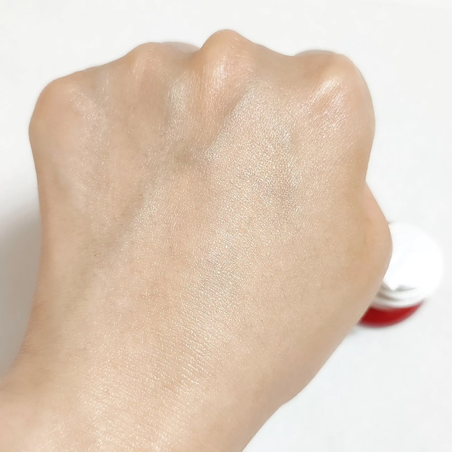 実際に塗布するとスルーっと伸びて、肌に馴染みやすい👌 パールのキラキラ感も相まって、トーンアップしてくれます✨ パール入りでナチュラルなツヤ肌に仕上げてくれます✨ 毛穴もぼかしてくれる感じがして◎ 軽いつけ心地でしっとり感もある! 秋冬に使っていきたいアイテム🎃⛄