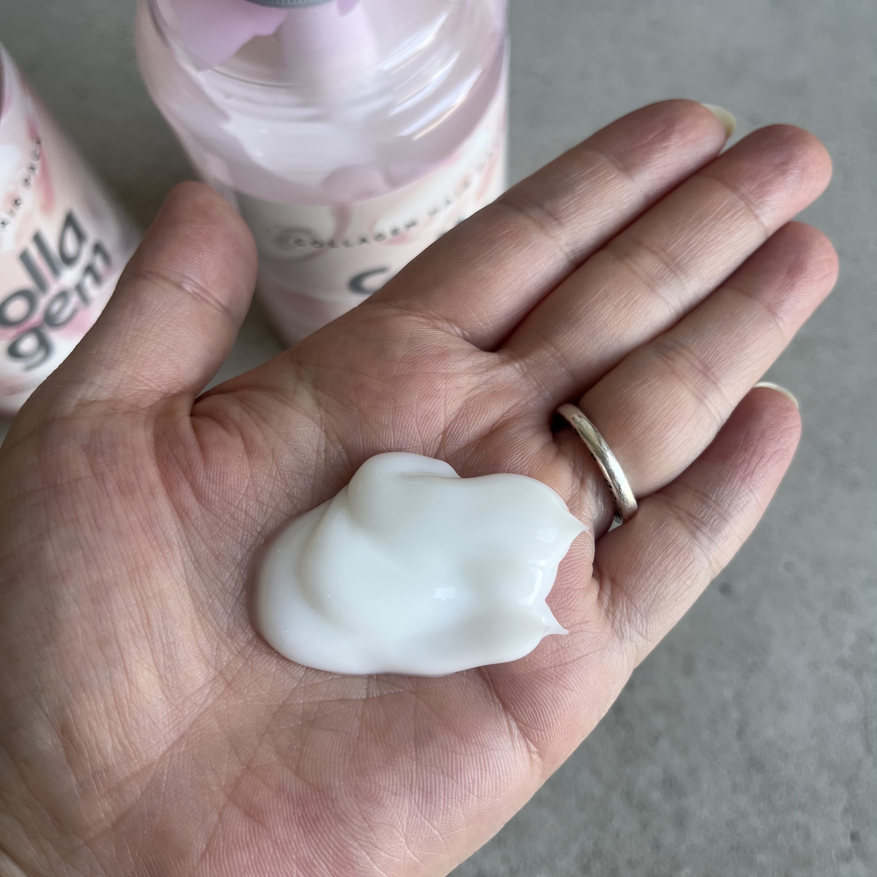 - 洗うだけで、濃密コラーゲンヘアパック※1,4,5,6 「コラジェム モイスチャーリペアシャンプー&トリートメント」 コラーゲン由来の洗浄成分※1配合(※シャンプーのみ) 乾燥・パサつく髪に【高浸透&保水】 まとまる、ぷるうる髪へ ◎リッチハイドレーション処方 【髪内部の崩れた保水の構造※2を補修】 パサついて硬くなった髪をなめらかに ➀スクワラン※3 髪内部に浸透し、潤いとしなやかさを与える ➁モイスチャーオイル※4 髪を補修・保護し、なめらかな手触りに 【コラーゲン美容補修成分※5,6】 ➀デュアルリペアコラーゲン※5 大きさが違う2つのコラーゲンが 内部と外部から潤い浸透、洗うたび補修 ➁ヒートケアコラーゲンMIX※6,7 熱を味方にしてアイロンなどの熱ダメージから キューティクルを補修・保護 「ほんのり甘く透明感のある ロゼサボンの香り で癒しのバスタイムに」 ※1 ココイル加水分解コラーゲンK(洗浄成分) ※2 毛髪の水分と油分のバランスのこと ※3 エモリエント成分 ※4 マカデミア種子油、ヒマワリ種子油(すべてエモリエント成分) ※5 サクシノイルアテロコラーゲン、加水分解コラーゲン(すべて毛髪補修成分) ※6 加水分解コラーゲンPGプロピルメチルシランジオール(毛髪補修成分) ※7 グルコシルヘスペリジン(保湿成分)