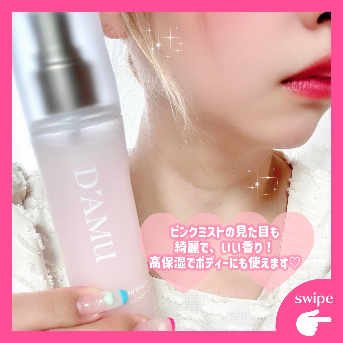 愛らしいピンク🩷いちごミルクのようなミスト.ᐟ.ᐟ/D'AMUビタファイブエックスコラーゲンクリームミスト100mlツヤ肌仕上げ・微細ミスト・保湿ケア・スプレーセラム\めっちゃ可愛いやんね♡使ってみたからぜひ見ていって欲しいな🥺🩷@Damu_...