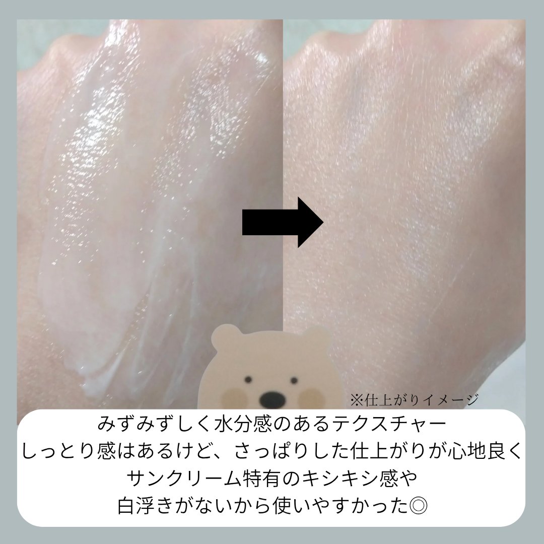 | 日焼け止め・UVケアランキング第33位 | ふわっとした硬めのクリームだけど、 するっと伸びが良く、 なじませているうちに水感を感じ、 なじむとベタつきなく さらっと軽い使い心地だよ。 | 詳細を見る | |