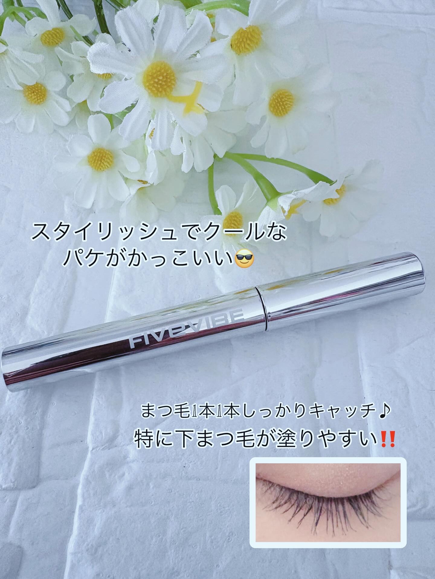 FIVEVIBEエクストラスリムカールアップマスカラブラックグレーっぽくならない、はっきりと濃密なブラックで印象的な目元に✔️ナチュラルロングラッシュ・2.55mmの極細ブラシで、まつげの根元から下まつげまで繊細にキャッチ✔️ダマ知らずのなめ...