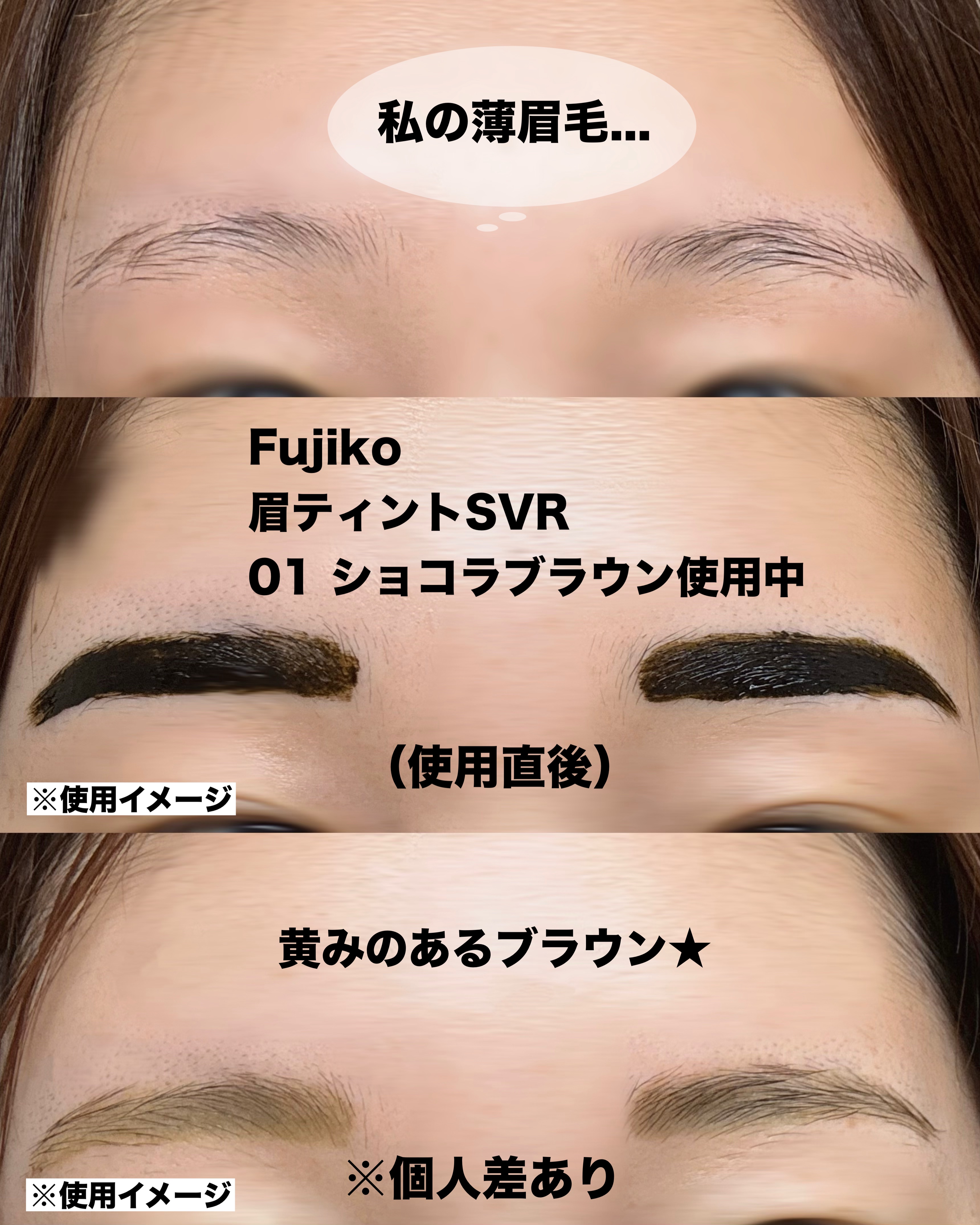 Fujikoシリーズ大好きなの!実は提供でいただく前から別カラーを持ってたからカラー比較もしたけど 今回の眉ティントのおすすめポイントは【部分使い】ができること! だから部分使いできるようなナギ型のハケしてるからとっても使いやすい!