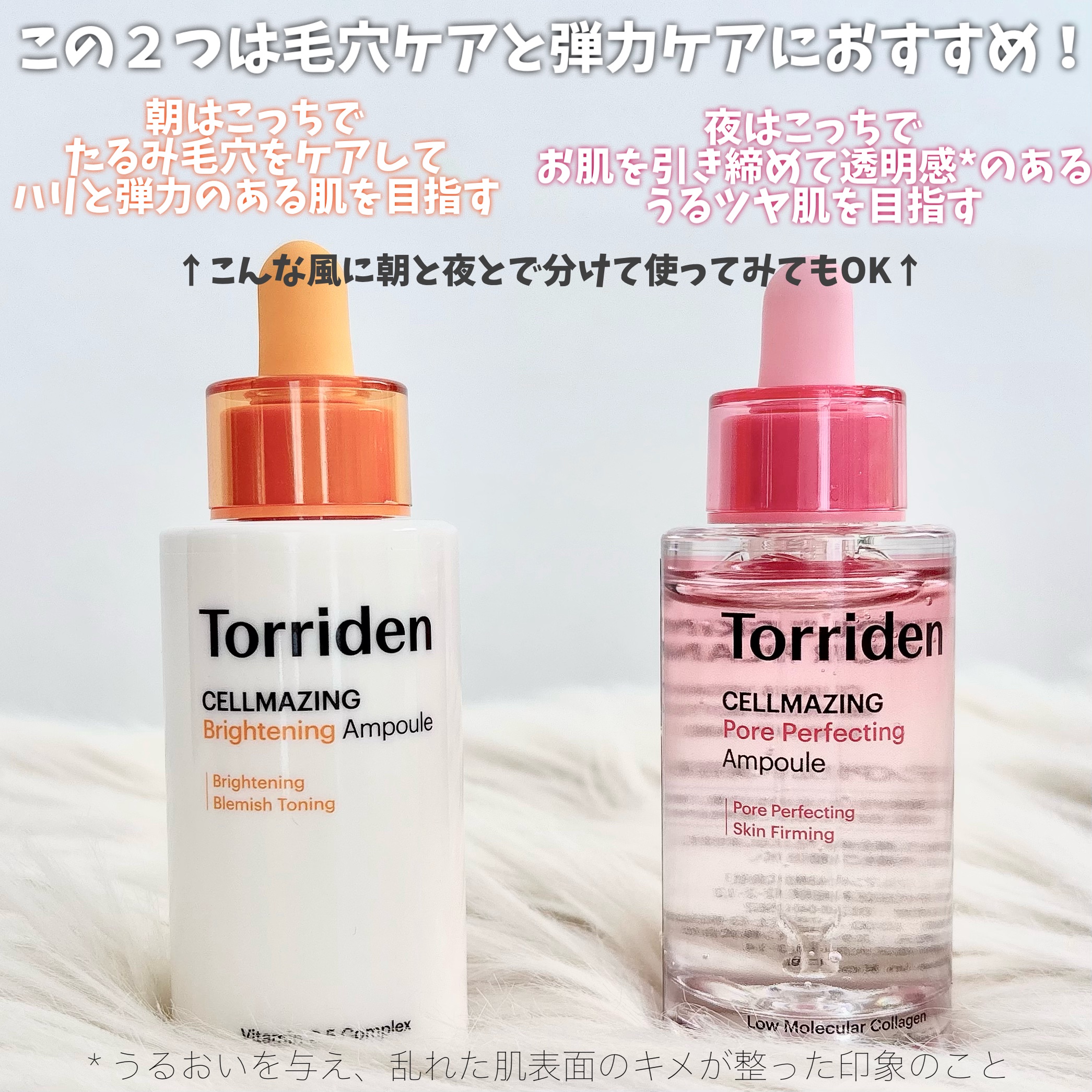 Torridenの美容液が優秀すぎた👏肌悩みに合わせて組み合わせて使うのがオススメです!🧡朝のくすみケア🧡セルメイジングビタCアンプル5種ビタミンC*1+誘導体をリポソーム化した美容液!乾燥によるくすみをケアし、明るい印象の肌へパンテノール*...