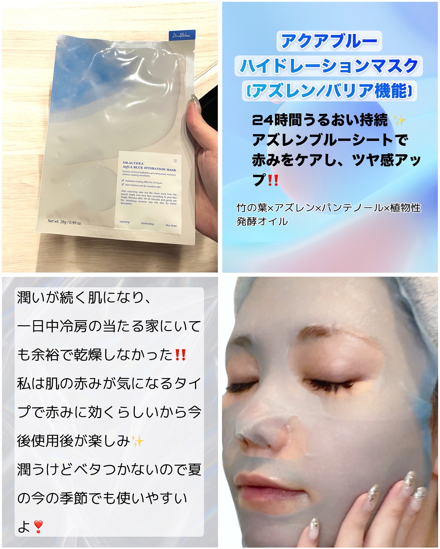 ドクターエルシア様からご提供いただきました🌸24時間うるおい持続!ブルーシート💙アクアブルーハイドレーションマスクぷるんと密着!ジェリーシート💜ジェリーシールリペア(デュイ)マスクアクアブルーハイドレーションマスクはツヤツヤのうるおいたっぷり...