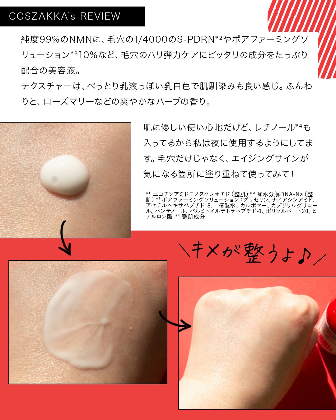 | とろみはあるけどベタつかず、伸ばしていくと肌がツヤっぽくなっていく◎ | 詳細を見る | |||