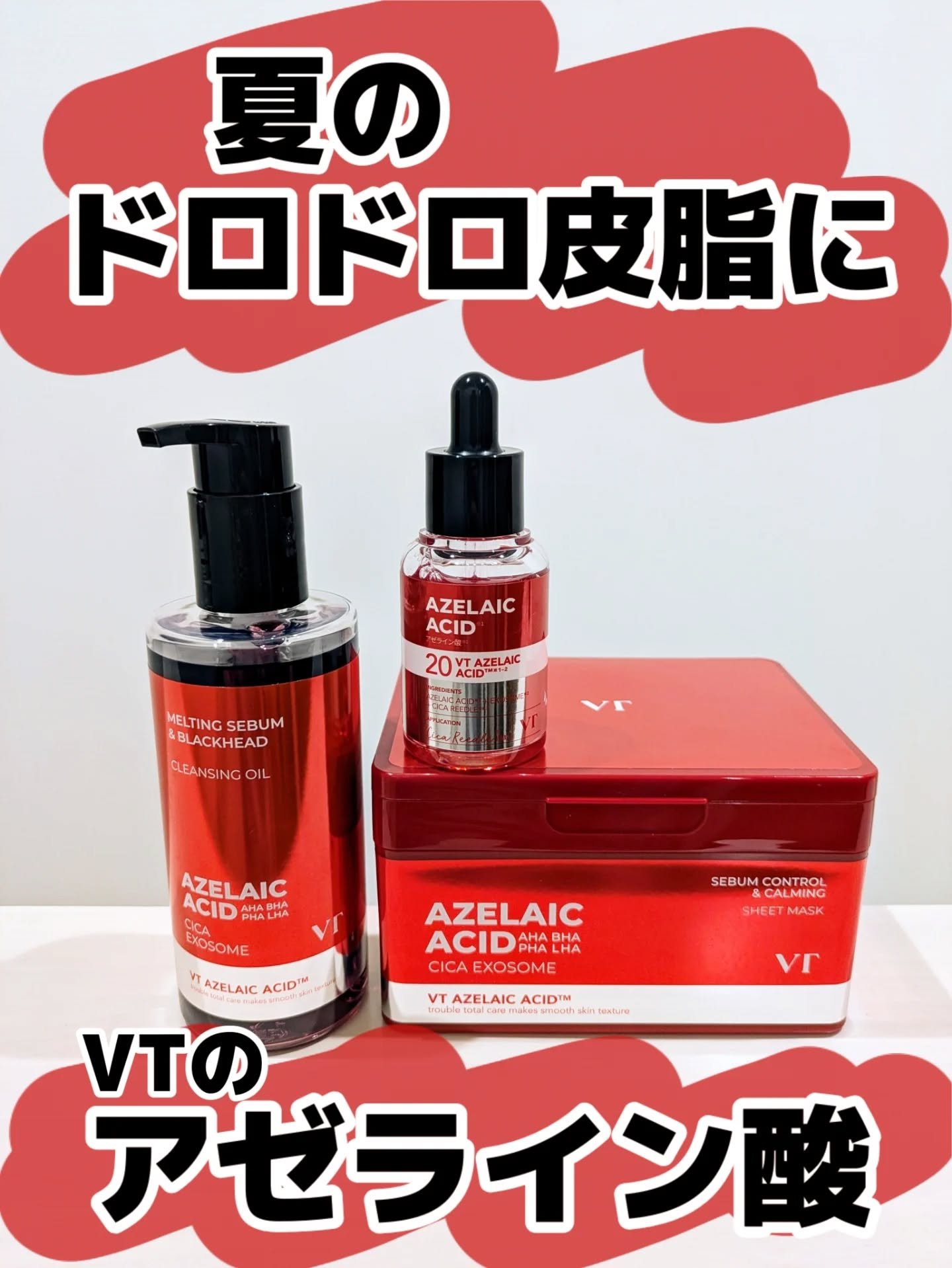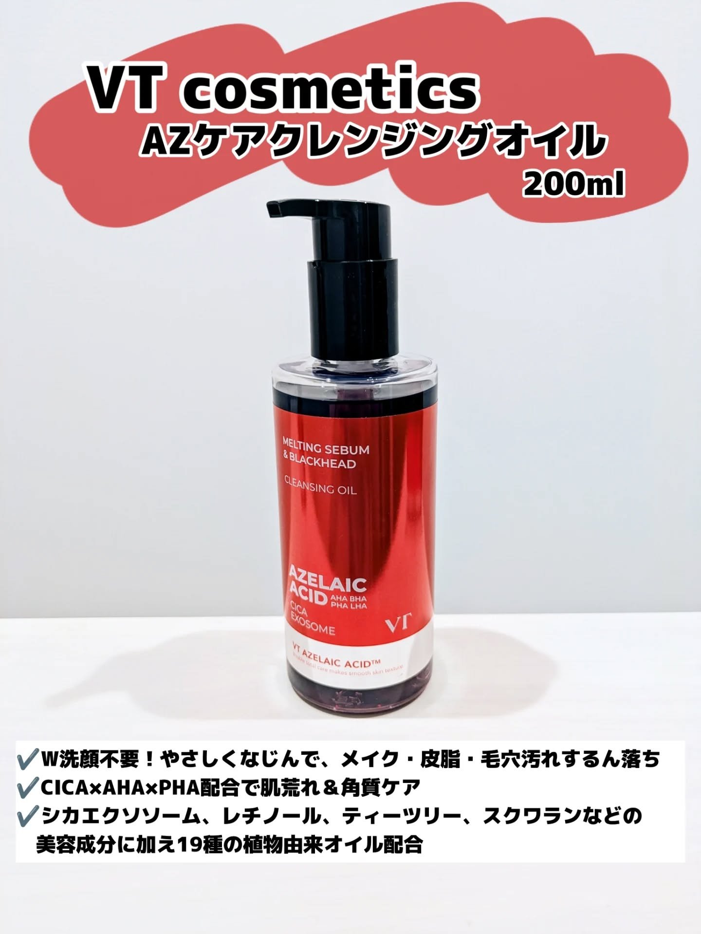 ㅤㅤㅤㅤㅤㅤ\赤い色のクレンジング♥️/肌質改善(ニキビ・ブラックヘッド)にはクレンジングから見直せ!❤️🔥ブラックヘッド、ホワイトヘッドケアにもおすすめのVTcosmeticsアゼライン酸クレンジングオイルメイクだけでなく古い角質と老廃物...