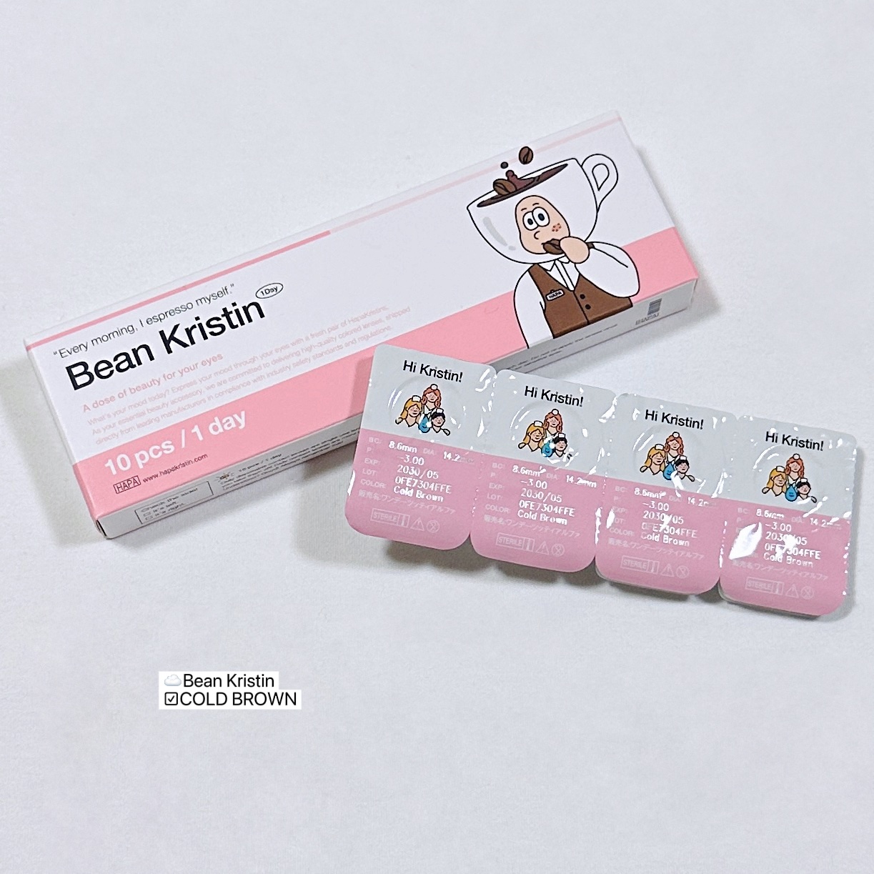 大人気のハパクリスティンのウォニョンレンズ💖 日本承認の新色「ビーンクリスティン コールドブラウン」をレポ✍ 寒色系の墨色に明るめのブラウンのハイライトがデザインされたレンズ💎 深みのあるクールなカラーにうるっと感のあるハイライトデザインが素敵なレンズ(๑^◡^๑)