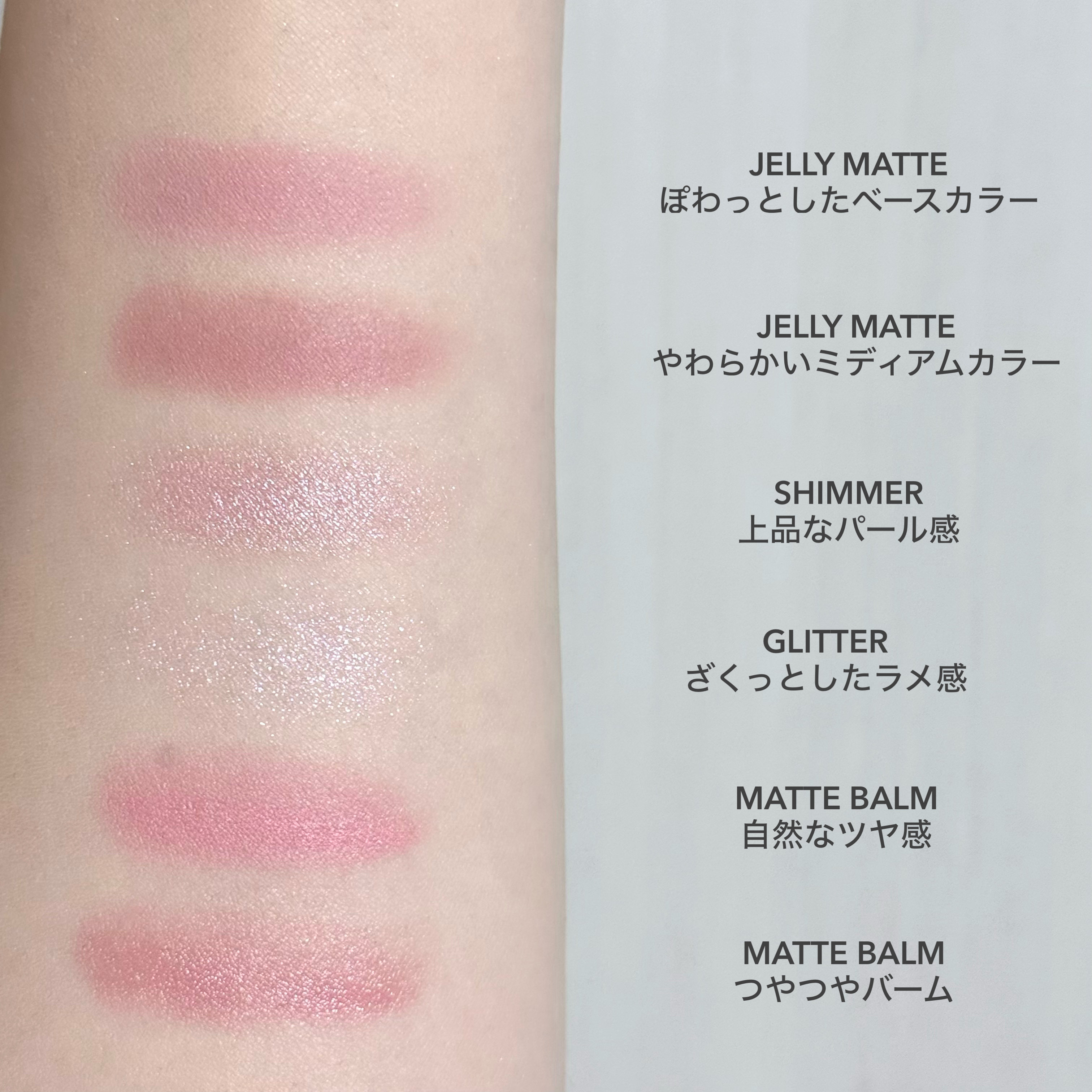 - <04 ピーチフラッシュ> 1Sweet ジメチコン、合成フルオロフロゴパイト、マイカ、酸化チタン、ジフェニルシロキシフェニルトリメチコン、ポリプロピレン、ポリメチルシルセスキオキサン、リンゴ酸ジイソステアリル、炭酸ジカプリリル、ホウケイ酸(Ca/チタン)、ヘキサ(ヒドロキシステアリン酸/ステアリン酸/ロジン酸)ジペンタエリスリチル、(ジメチコン/ビニルジメチコン)クロスポリマー、ステアロイルオキシステアリン酸オクチルドデシル、タルク、ポリイソブテン、1,2-ヘキサンジオール、水添レシチン、酸化スズ、カプリル酸グリセリル、シリカ、酸化鉄、トリエトキシカプリリルシラン、トコフェロール 2Fairy ジメチコン、マイカ、タルク、酸化チタン、ジフェニルシロキシフェニルトリメチコン、ステアリン酸Mg、(ジメチコン/ビニルジメチコン)クロスポリマー、リンゴ酸ジイソステアリル、水添ポリ(C6-14オレフィン)、酸化鉄、ポリプロピレン、水添レシチン、シリカ、カルミン、1,2-ヘキサンジオール、トリエトキシカプリリルシラン、マンガンバイオレット、カプリル酸グリセリル、ラウロイルリシン、水酸化Al、マルトデキストリン、カオリン 3Brown タルク、マイカ、酸化鉄、グンジョウ、窒化ホウ素、シリカ、(ビニルジメチコン/メチコンシルセスキオキサン)クロスポリマー、エチルヘキサン酸セチル、ステアリン酸Mg、トリ(カプリル酸/カプリン酸)グリセリル、ヘキサ(ヒドロキシステアリン酸/ステアリン酸/ロジン酸)ジペンタエリスリチル、マンガンバイオレット、カルミン、カオリン、1,2-ヘキサンジオール、ジメチコン、トリエトキシカプリリルシラン、水添レシチン、カプリル酸グリセリル、マルトデキストリン 4Candy ジメチコン、マイカ、酸化チタン、合成フルオロフロゴパイト、ジフェニルシロキシフェニルトリメチコン、ポリプロピレン、ポリメチルシルセスキオキサン、リンゴ酸ジイソステアリル、炭酸ジカプリリル、ヘキサ(ヒドロキシステアリン酸/ステアリン酸/ロジン酸)ジペンタエリスリチル、タルク、(ジメチコン/ビニルジメチコン)クロスポリマー、ステアロイルオキシステアリン酸オクチルドデシル、ポリイソブテン、カルミン、黄4、1,2-ヘキサンジオール、水添レシチン、酸化鉄、カプリル酸グリセリル、シリカ、酸化スズ、トリエトキシカプリリルシラン、マルトデキストリン、トコフェロール 5Peach ジメチコン、マイカ、タルク、ジフェニルシロキシフェニルトリメチコン、ステアリン酸Mg、酸化チタン、(ジメチコン/ビニルジメチコン)クロスポリマー、黄4、リンゴ酸ジイソステアリル、カルミン、水添ポリ(C6-14オレフィン)、酸化鉄、ポリプロピレン、水添レシチン、シリカ、1,2-ヘキサンジオール、トリエトキシカプリリルシラン、カプリル酸グリセリル、マルトデキストリン 6Mellow オクチルドデカノール、イソノナン酸イソノニル、トリイソステアリン酸ポリグリセリル-2、トリエチルヘキサノイン、テトライソステアリン酸ペンタエリスリチル、水添ポリイソブテン、酸化チタン、トリ(カプリル酸/カプリン酸)グリセリル、ダイマージリノール酸(フィトステリル/イソステアリル/セチル/ステアリル/ベヘニル)、セレシン、シリカ、ビスジグリセリルポリアシルアジペート-2、マイカ、オゾケライト、合成ワックス、ステアラルコニウムヘクトライト、セスキオレイン酸ソルビタン、ポリリシノレイン酸ポリグリセリル-6、酸化鉄、カルミン、炭酸プロピレン、黄4、ポリヒドロキシステアリン酸、イソステアリン酸、パルミチン酸エチルヘキシル、ミリスチン酸イソプロピル、レシチン、ジメチコン、デヒドロ酢酸、ポリリシノレイン酸ポリグリセリル-3、マルトデキストリン <05 ピンクフレア> 1Bare ジメチコン、合成フルオロフロゴパイト、マイカ、酸化チタン、ジフェニルシロキシフェニルトリメチコン、ポリプロピレン、タルク、ポリメチルシルセスキオキサン、リンゴ酸ジイソステアリル、炭酸ジカプリリル、ヘキサ(ヒドロキシステアリン酸/ステアリン酸/ロジン酸)ジペンタエリスリチル、(ジメチコン/ビニルジメチコン)クロスポリマー、ステアロイルオキシステアリン酸オクチルドデシル、ポリイソブテン、1,2-ヘキサンジオール、水添レシチン、酸化スズ、カプリル酸グリセリル、カルミン、シリカ、トリエトキシカプリリルシラン、酸化鉄、グンジョウ、マルトデキストリン、トコフェロール 2Blossom ジメチコン、マイカ、タルク、ジフェニルシロキシフェニルトリメチコン、ステアリン酸Mg、酸化チタン、(ジメチコン/ビニルジメチコン)クロスポリマー、リンゴ酸ジイソステアリル、水添ポリ(C6-14オレフィン)、ポリプロピレン、カルミン、水添レシチン、シリカ、グンジョウ、1,2-ヘキサンジオール、トリエトキシカプリリルシラン、酸化鉄、マンガンバイオレット、カプリル酸グリセリル、マルトデキストリン、カオリン 3Vintage タルク、マイカ、マンガンバイオレット、酸化鉄、窒