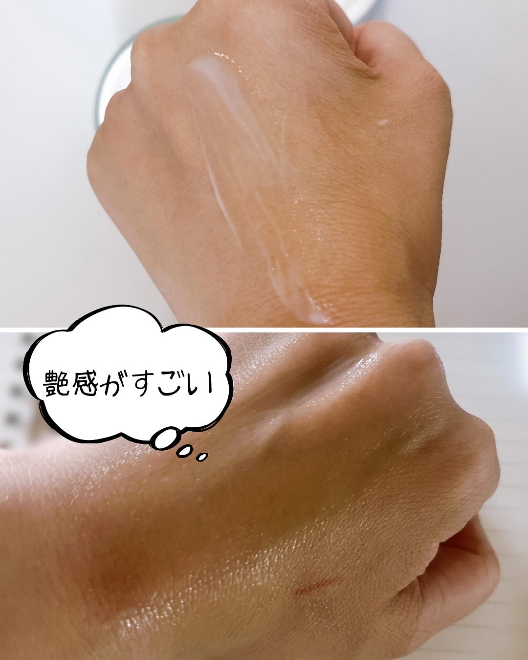 リニューアル前のものも使ったことがあるんですが、こちらの新しいものを使用した感想は、前のものより白浮しにくくて、艶感が加わったように保湿感が前のものよりあるように感じました! 前のものより乾燥しにくかったです。 つけた感じとても水分感が多めで、乾燥しにくいと感じました。 これだけ塗ってもとてもつやがでて、トーンアップされる感じが良かったです👍 艶感あるのにピタッとついてくれてよれにくいところも良いですね!