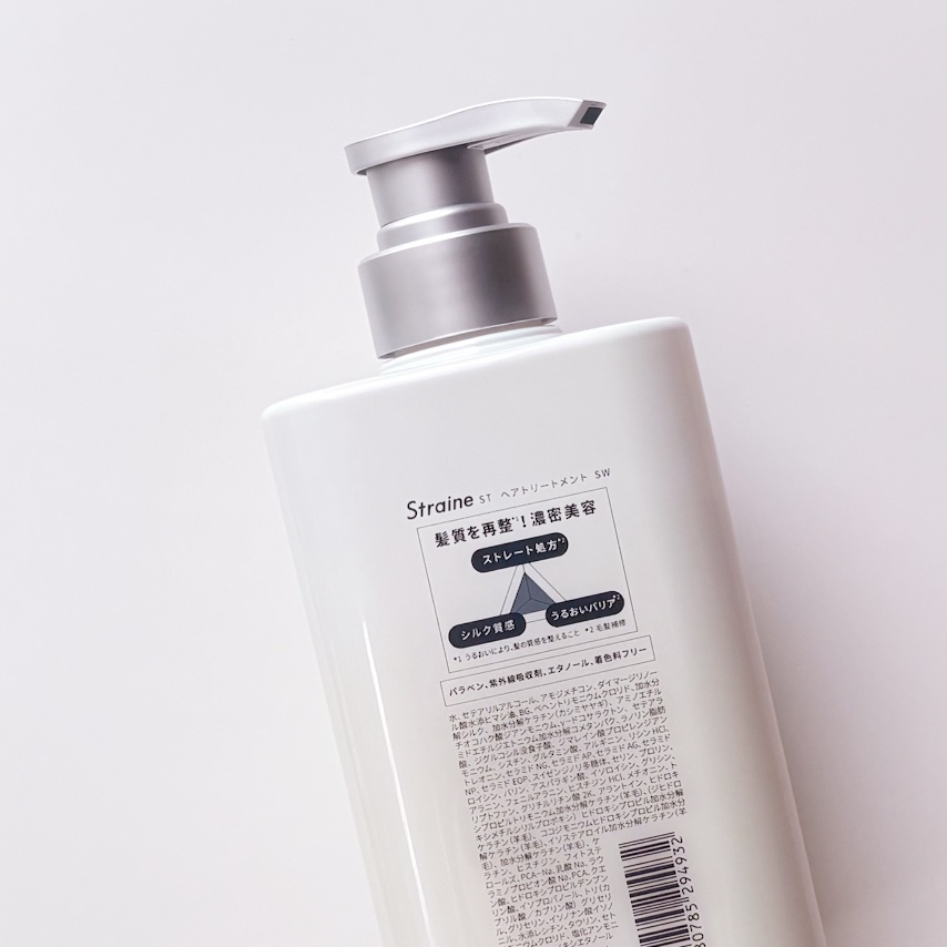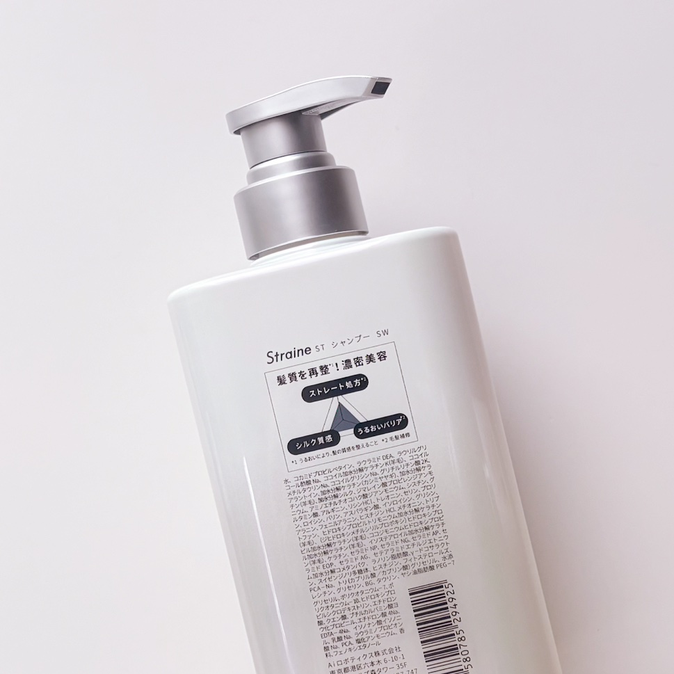 - “straight(真っ直ぐ)”と“line(線)”を組み合わせた造語「Straine」は、まるで一本の美しいラインのようにしなやかで整ったストレートヘアをイメージ。理想のストレート質感を目指し厳選した補修成分と内部構造に着目した独自の補修設計技術で、乾燥によるクセ・うねりケアに悩むすべての人へ、新しい自分との出会いをお届けする新ヘアケアブランドです。  ️髪の内部構造に着目した、独自の「トリプルストレート処方」 縮毛補修発想。髪の内側の構造に着目し、まっすぐまとまる髪を科学的に研究し導きだした3つの処方。 髪の構造を深く理解したアプローチで髪質を再整*1し、潤いを保ちながら、滑らかな指通りへ。 9種の必須アミノ酸*2と7種のケラチン*3を贅沢に配合し、髪内部を補修をしながら、理想の“シルクストレート質感*4 ”を目指します。  ️POINT01|内部補修 -髪内部のうねり原因を補修。まっすぐな髪を目指して。 髪のうねりの原因となる乾燥による内部構造の乱れを、必須アミノ酸*2を含むアミノ酸と密度補強成分「ジマレイン酸」*5で補修。さらに、縮毛補修発想から生まれた成分「トステア®」*6を配合し、ハリ・コシのあるストレート髪を目指します。  ️POINT02|シルク質感 ‐ダメージを立体補修 ダメージによって生まれた髪内部の空洞“ダメージホール”を、保湿成分である7種類の分子量の異なるケラチン*3が髪芯部まで浸透し、立体的に内側まで補修。PPT系高級洗浄成分*7が、髪1本1本を洗い上げ、しなやかで指通りなめらかな“シルクタッチ”の髪へと仕上げます。  ️POINT03|うるおいバリア ―湿気や熱から髪を守る 湿気によるうねりを防ぐために、5種のセラミド*8とサクラン®*9で髪内部の水分をキープ。さらに、熱に反応してバリアを形成する「γ-ドコサラクトン」*10と、キューティクルを保護する「擬似18-MEA」*11が外的ダメージから髪を守り、湿気から髪を保護しながらストレート状態を長時間キープします。  ️凛とした透明感が香り立つホワイトブロッサムの香り サロン帰りのような心地よさを、毎日のバスタイムに。フレッシュなフローラルと果実の爽やかさが調和した、みずみずしく上品な香りです。 *1 うるおいにより、髪の質感を整えること *2 バリン、トレオニン、イソロイシン、ヒスチジン、フェニルアラニン、ロイシン、リシンHCl、メチオニン、トリプトファン(全て保湿) *3 加水分解ケラチン(カシミヤヤギ)、ヒドロキシプロピルトリモニウム加水分解ケラチン(羊毛)、(ジヒドロキシメチルシリルプロポキシ)ヒドロキシプロピル加水分解ケラチン(羊毛)、ココジモニウムヒドロキシプロピル加水分解ケラチン(羊毛)、イソステアロイル加水分解ケラチン(羊毛)、加水分解ケラチン(羊毛)、ケラチン(全て保湿) *4 うるおいによる、なめらかな質感のこと *5 ジマレイン酸プロピレンジアンモニウム(保湿) *6 アミノエチルチオコハク酸ジアンモニウム(保湿) *7 ココイル加水分解ケラチンK(羊毛)(洗浄) *8 セラミドNG、セラミドAP、セラミドAG、セラミドNP、セラミドEOP(全て保湿) *9 スイゼンジノリ多糖体(保湿) *10 (保湿) *11 セテアラミドエチルジエトニウム加水分解コメタンパク、ラノリン脂肪酸(保湿)