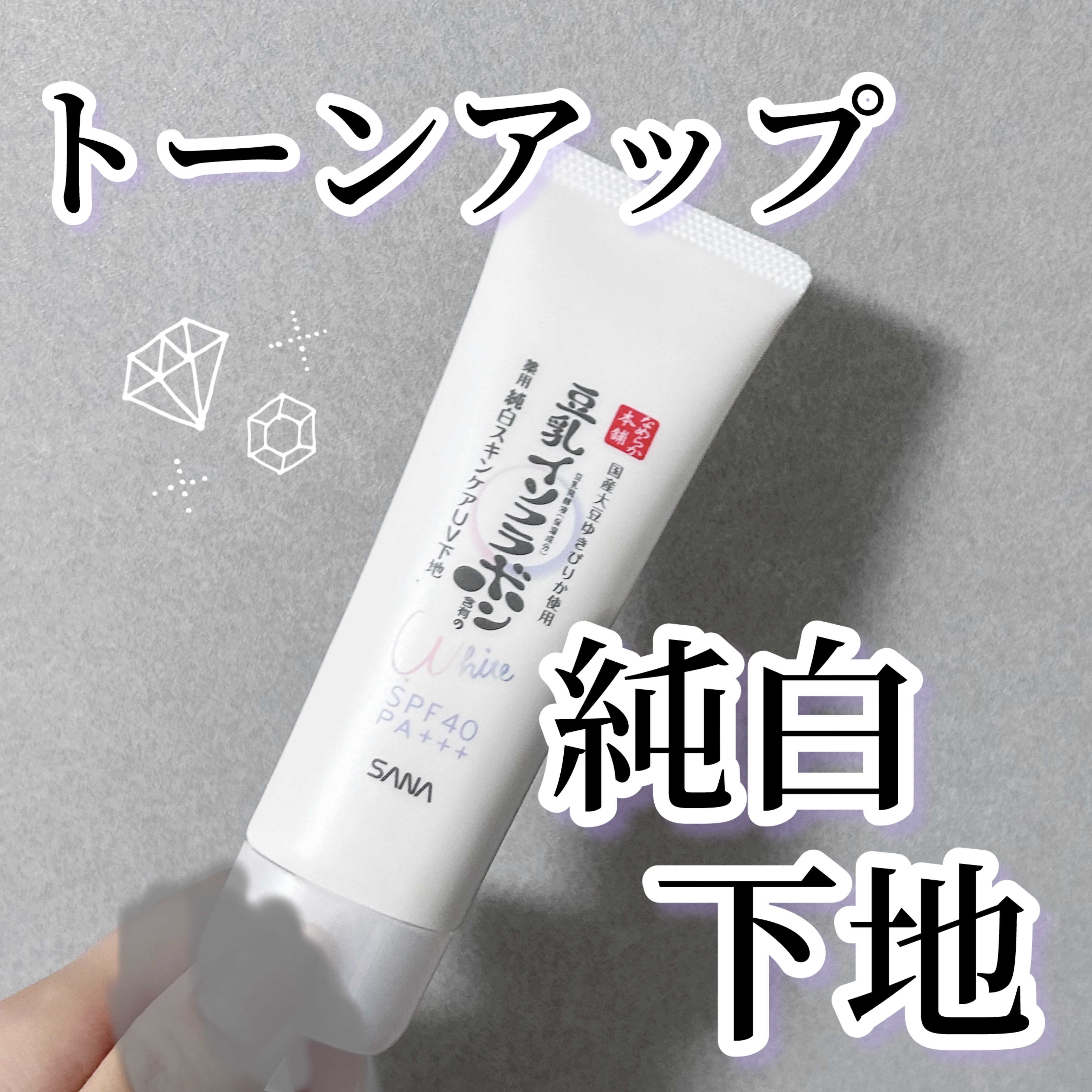 - <薬用美白スキンケアUV下地> 豆乳の美白スキンケアUV下地。肌荒れ&ニキビ予防しながら美白!メラニンの生成を抑え、シミ・そばかすを防ぎます。トーンアップ(メイク効果による)&皮脂崩れ防止。化粧水・美容液・乳液・クリーム・UVカット・化粧下地の1本6役。SPF40・PA+++。[販売名:サナ なめらか本舗 薬用美白スキンケアUV下地]