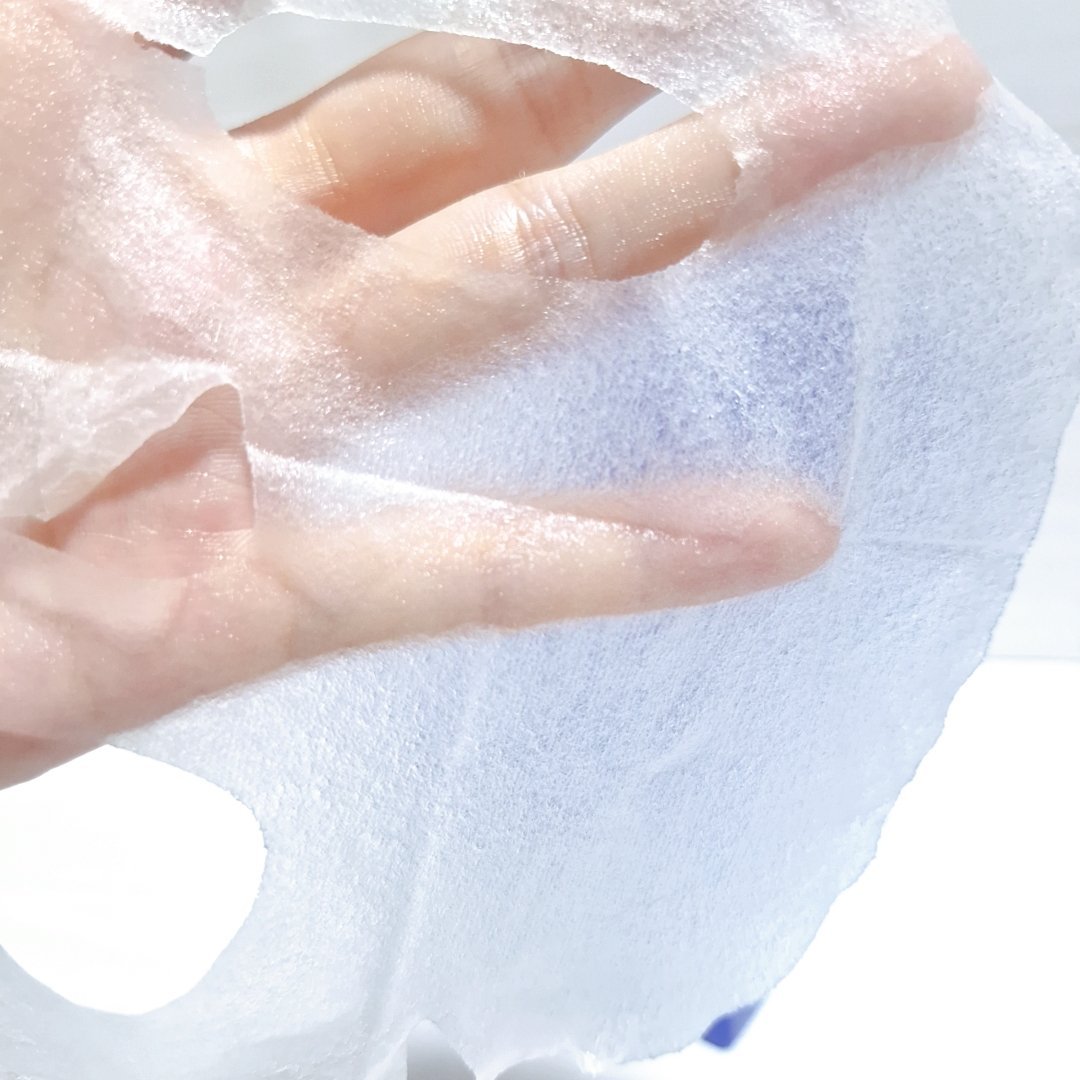 うるおいを与えてハリ感のあふれる素肌へ導いてくれるシートマスク。化粧水の後に使用です。 薄めの柔らかいマスクには液がひたひた。 ぴたっと密着してくれます。 さっぱりめの液ですが、さっぱりしつつもうるおうような使用感。 べたつきも気にならないので朝マスクにも使いやすいと思います。