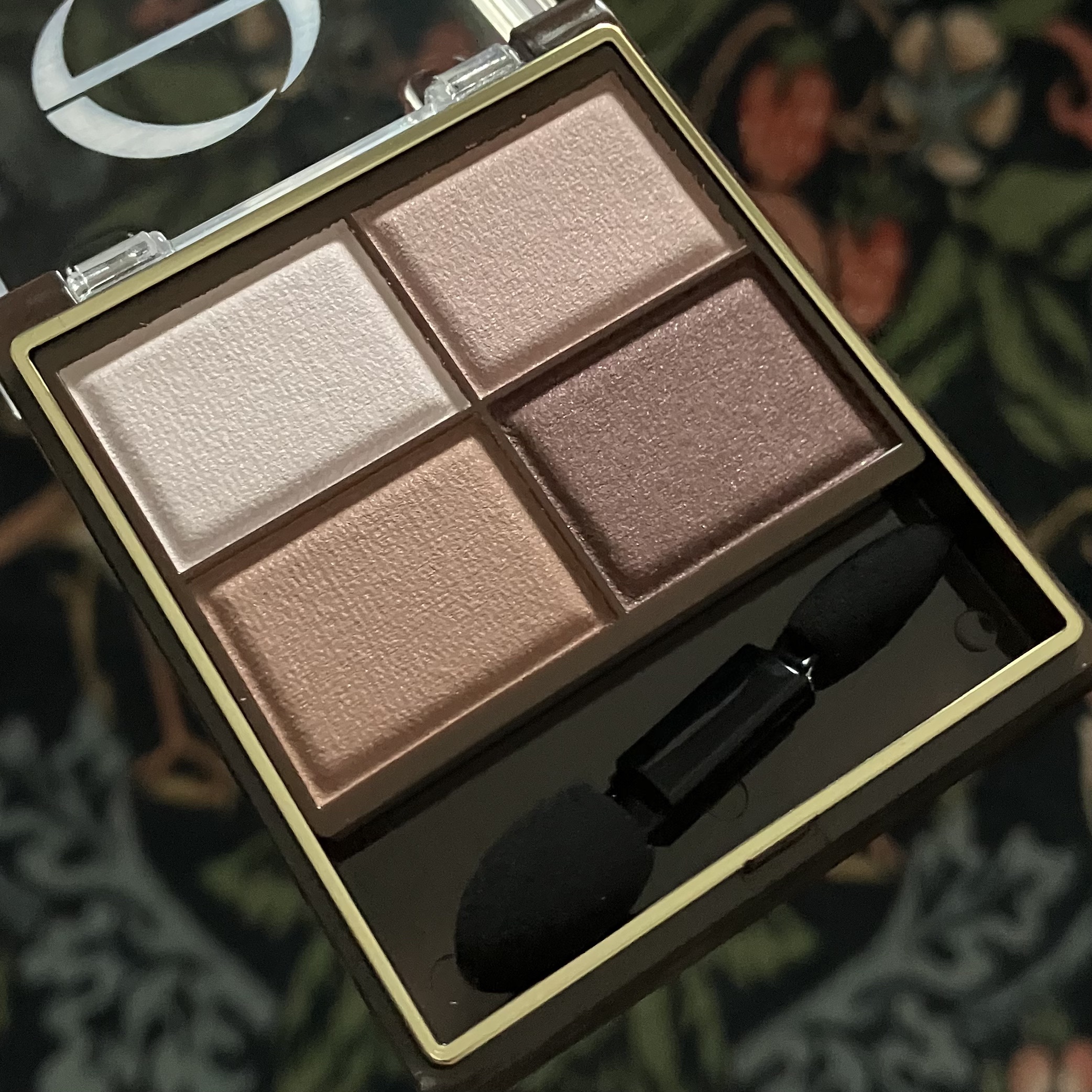 持ってる他のCEZANNEのアイシャドウはわりと甘い仕上がりになるものが多かったけれど、これは黄みが強くて淡いブラウンとシックなシャンパンベージュ、鮮やかな赤の組み合わせがまさにアンティークで大人っぽい仕上がりになる。 右上のシマーベージュが意外に煌めきが強くてハイライトとして使える。 右下の赤はかなり高発色。そのままでアンダーラインを引くと血色感が出て可愛いし、左下のブラウンと混ぜて涙袋の影にすると自然になって良かった。 右下の赤以外はどれも肌馴染みの良い色で他のアイシャドウと組み合わせても上手く決まるから汎用性高い。
