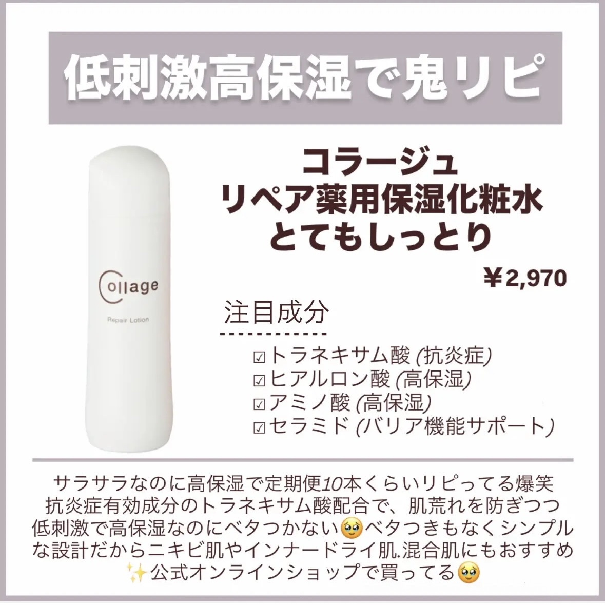 コラージュ リペア薬用保湿化粧水 しっとり | 2,970円 |