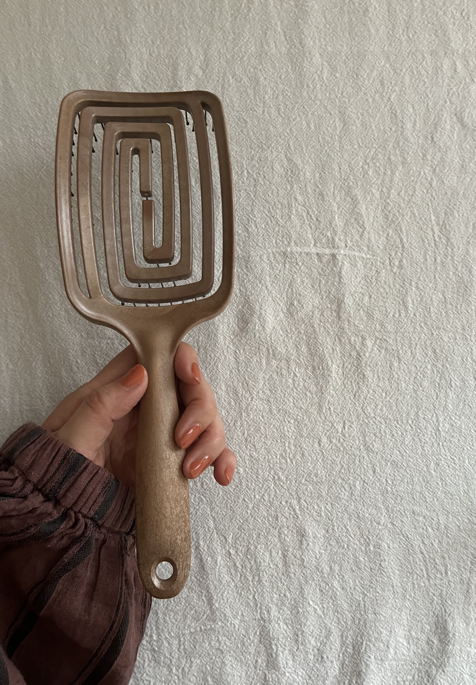 水洗い可能、濡れた髪でも難なく梳かせることが出来て、ホームケア用にも使用⭕️な可愛いブラシ🌸 静電気防止機能があり、独特のふっくらとした快適なグリップ感で長時間の使用でも手が疲れにくいとか! 頭皮を傷つけずにマッサージ機能を!