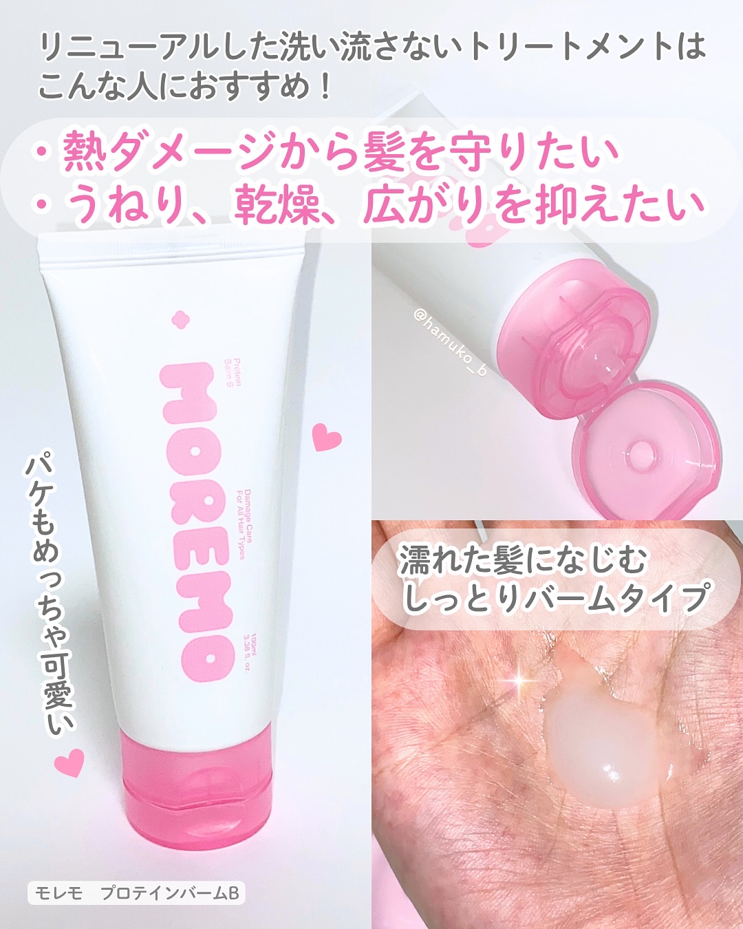 ー🏷'MOREMO▫プロテインバームB(洗い流さないトリートメント)\夏のうねりに🌴夜のモレモでモレ髪に☁️/湿気も高熱アイロンもこわくない毎朝ラク髪が叶った️♡𓂃💭・ヘアカラーでパサパサ・湿気でうねうね・毎朝アイロンしないと無理…そんな私の...