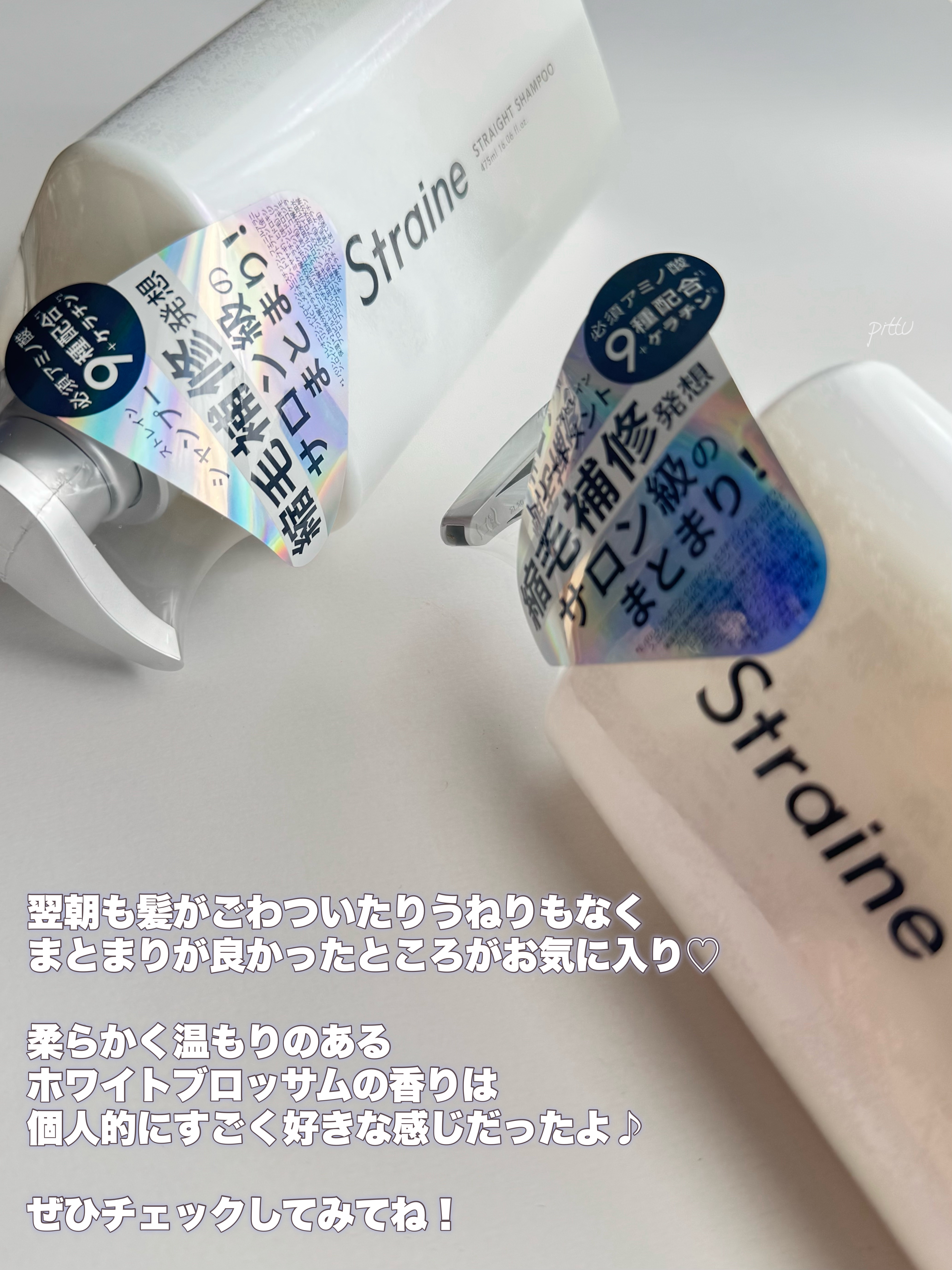 - âstraight(çã£çŽã)âãšâline(ç·)âãçµã¿åãããé èªãStraineãã¯ããŸãã§äžæ¬ã®çŸããã©ã€ã³ã®ããã«ããªããã§æŽã£ãã¹ãã¬ãŒããã¢ãã€ã¡ãŒãžãçæ³ã®ã¹ãã¬ãŒã質æãç®æãå³éžããè£ä¿®æåãšå éšæ§é ã«çç®ããç¬èªã®è£ä¿®èšèšæè¡ã§ã也ç¥ã«ããã¯ã»ã»ãããã±ã¢ã«æ©ããã¹ãŠã®äººãžãæ°ããèªåãšã®åºäŒãããå±ãããæ°ãã¢ã±ã¢ãã©ã³ãã§ãã ᅩ ïžé«ªã®å éšæ§é ã«çç®ãããç¬èªã®ãããªãã«ã¹ãã¬ãŒãåŠæ¹ã çž®æ¯è£ä¿®çºæ³ã髪ã®å åŽã®æ§é ã«çç®ãããŸã£ãããŸãšãŸã髪ãç§åŠçã«ç ç©¶ãå°ãã ããïŒã€ã®åŠæ¹ãÂ é«ªã®æ§é ãæ·±ãçè§£ããã¢ãããŒãã§é«ªè³ªãåæŽ*1ããæœ€ããä¿ã¡ãªãããæ»ãããªæéããžã 9çš®ã®å¿ é ã¢ããé ž*2ãš7çš®ã®ã±ã©ãã³*3ãèŽ æ²¢ã«é åãã髪å éšãè£ä¿®ãããªãããçæ³ã®âã·ã«ã¯ã¹ãã¬ãŒã質æ*4 âãç®æããŸãã ᅩ ïžPOINT01ïœå éšè£ä¿®ãïŒé«ªå éšã®ãããåå ãè£ä¿®ããŸã£ãããªé«ªãç®æããŠã 髪ã®ãããã®åå ãšãªã也ç¥ã«ããå éšæ§é ã®ä¹±ãããå¿ é ã¢ããé ž*2ãå«ãã¢ããé žãšå¯åºŠè£åŒ·æåããžãã¬ã€ã³é žã*5ã§è£ä¿®ãããã«ãçž®æ¯è£ä¿®çºæ³ããçãŸããæåããã¹ãã¢Â®ã*6ãé åããããªã»ã³ã·ã®ããã¹ãã¬ãŒã髪ãç®æããŸãã ᅩ ïžPOINT02ïœã·ã«ã¯è³ªæãâãã¡ãŒãžãç«äœè£ä¿® ãã¡ãŒãžã«ãã£ãŠçãŸãã髪å éšã®ç©ºæŽâãã¡ãŒãžããŒã«âããä¿æ¹¿æåã§ãã7çš®é¡ã®ååéã®ç°ãªãã±ã©ãã³*3ã髪è¯éšãŸã§æµžéããç«äœçã«å åŽãŸã§è£ä¿®ãPPTç³»é«ç޿޿µæå*7ãã髪1æ¬1æ¬ãæŽãäžããããªããã§æéããªããããªâã·ã«ã¯ã¿ããâã®é«ªãžãšä»äžããŸãã ᅩ ïžPOINT03ïœããããããªã¢ãâæ¹¿æ°ãç±ãã髪ãå®ã 湿æ°ã«ããããããé²ãããã«ã5çš®ã®ã»ã©ãã*8ãšãµã¯ã©ã³Â®*9ã§é«ªå éšã®æ°ŽåãããŒããããã«ãç±ã«åå¿ããŠããªã¢ã圢æãããγ-ãã³ãµã©ã¯ãã³ã*10ãšããã¥ãŒãã£ã¯ã«ãä¿è·ãããæ¬äŒŒ18-MEAã*11ãå€çãã¡ãŒãžãã髪ãå®ããæ¹¿æ°ãã髪ãä¿è·ããªããã¹ãã¬ãŒãç¶æ ãé·æéããŒãããŸãã ᅩ ïžåãšããéææãéŠãç«ã€ãã¯ã€ãããããµã ã®éŠã ãµãã³åž°ãã®ãããªå¿å°ããããæ¯æ¥ã®ãã¹ã¿ã€ã ã«ããã¬ãã·ã¥ãªãããŒã©ã«ãšæå®ã®çœãããã調åãããã¿ãã¿ãããäžåãªéŠãã§ãã *1 ããããã«ããã髪ã®è³ªæãæŽããããš *2 ããªã³ããã¬ãªãã³ãã€ãœãã€ã·ã³ããã¹ããžã³ããã§ãã«ã¢ã©ãã³ããã€ã·ã³ããªã·ã³HClãã¡ããªãã³ãããªãããã¡ã³(å šãŠä¿æ¹¿) *3Â å æ°Žåè§£ã±ã©ãã³(ã«ã·ãã€ã€ã®)ãããããã·ãããã«ããªã¢ããŠã å æ°Žåè§£ã±ã©ãã³(çŸæ¯)ã(ãžããããã·ã¡ãã«ã·ãªã«ããããã·)ããããã·ãããã«å æ°Žåè§£ã±ã©ãã³(çŸæ¯)ãã³ã³ãžã¢ããŠã ããããã·ãããã«å æ°Žåè§£ã±ã©ãã³(çŸæ¯)ãã€ãœã¹ãã¢ãã€ã«å æ°Žåè§£ã±ã©ãã³(çŸæ¯)ãå æ°Žåè§£ã±ã©ãã³(çŸæ¯)ãã±ã©ãã³(å šãŠä¿æ¹¿) *4 ããããã«ããããªããããªè³ªæã®ããš *5 ãžãã¬ã€ã³é žãããã¬ã³ãžã¢ã³ã¢ããŠã (ä¿æ¹¿) *6 ã¢ãããšãã«ããªã³ãã¯é žãžã¢ã³ã¢ããŠã (ä¿æ¹¿) *7 ã³ã³ã€ã«å æ°Žåè§£ã±ã©ãã³ïŒ«(çŸæ¯)(æŽæµ) *8 ã»ã©ãããã»ã©ãããã»ã©ãããã»ã©ãããã»ã©ãã(å šãŠä¿æ¹¿) *9 ã¹ã€ãŒã³ãžããªå€ç³äœ(ä¿æ¹¿) *10 (ä¿æ¹¿) *11 ã»ãã¢ã©ãããšãã«ãžãšãããŠã å æ°Žåè§£ã³ã¡ã¿ã³ãã¯ãã©ããªã³èèªé ž(ä¿æ¹¿)