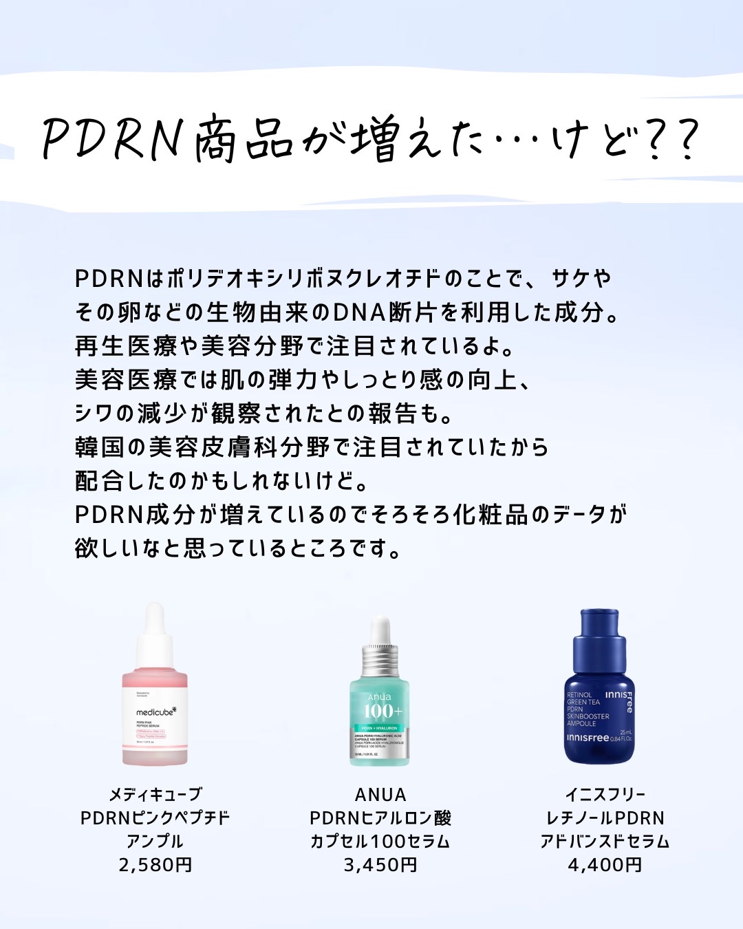 特定の有効成分を試してみたい。美容成分を試したい。そんな時は代用してもいいけど、それって似てるのかな?って思うときが正直ある。 同じ成分があっても実は濃度が違ったり、処方技術が違ったり。技術が違うと使用感も剤型も変わることがあることは知ったうえで使うといいかも。 せっかくプチプラ化粧品を買うならそれはそれで楽しんでほしいから是非念頭にいれてほしいな!!