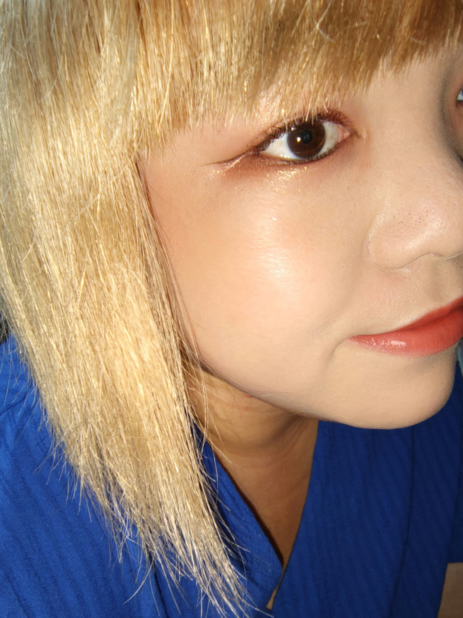 髪色変えた〜🥰久しぶりに前髪も作った✨✨メイク💕アイシャドウエレガンスエタンセルアルモニーアイズ02チークRMKピュアコンプレクションブラッシュディフューズドアンバーリップMAYBELLINENEWYORKSPステイヴィニルインク130極上の...