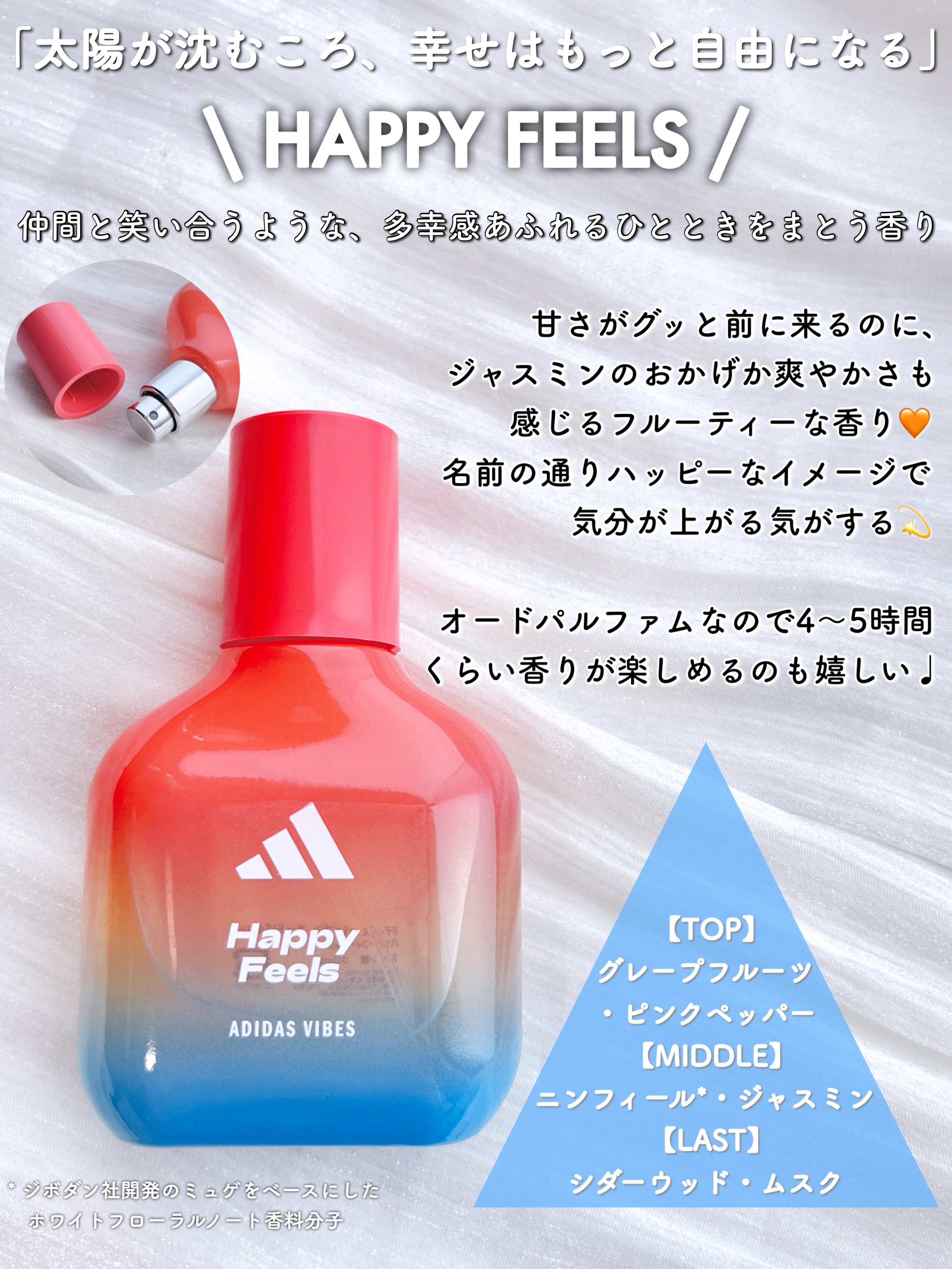 adidas「Vibes」シリーズオードパルファム🫧【HappyFeelsハッピーフィールズ】✿••••✿adidasからフレグランスが出ているの知ってた?ムードで選ぶ6種類の香りで私が選んだのはハッピーフィールズの香り🧡𓈒𓂂𓏸キャッチコ...