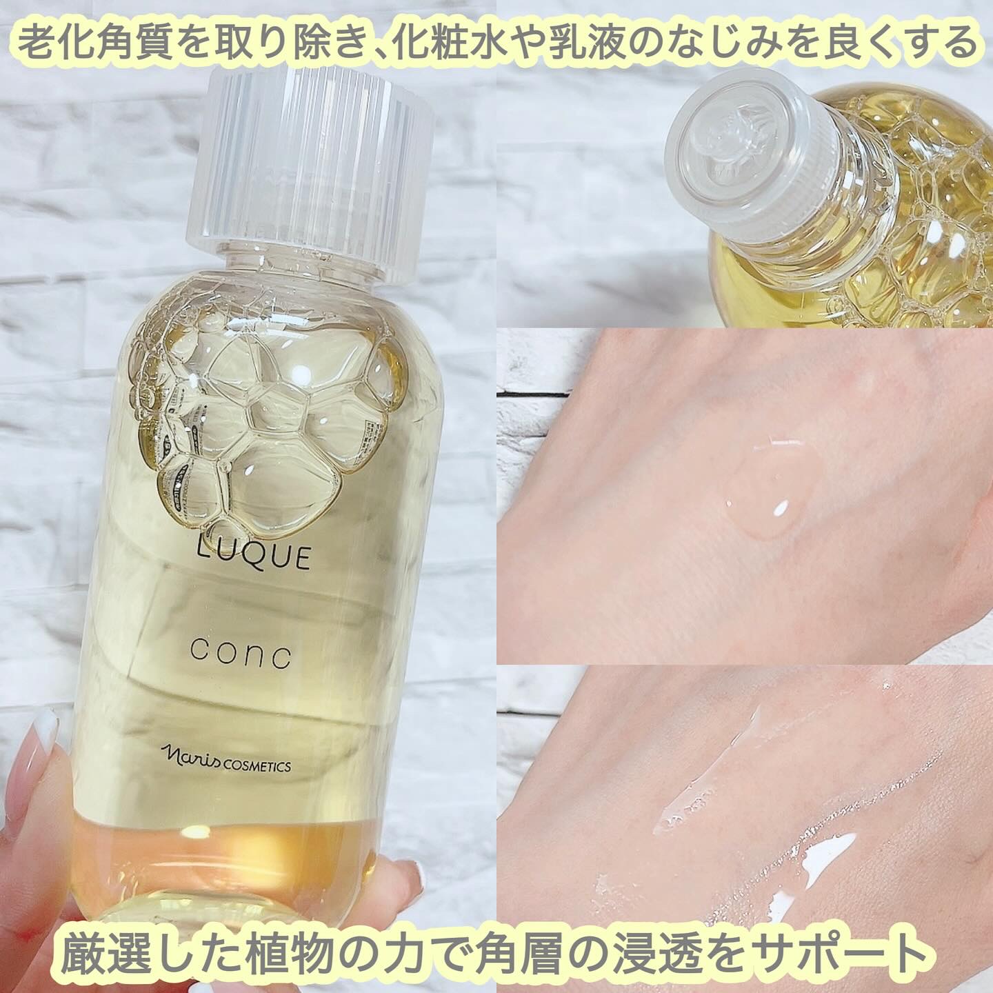 - ■毛穴、ザラつき、くすみ※1が気になる方に、不要な角質をふきとって、つるんとなめからかな肌へ。 ナリスのふきとり化粧水は、5年連続国内売上シェアNO.1※2 肌にとって余分な老化角質をおだやかに取り除き、素肌が持つ本来の美しさを引き出すルクエのコンク(ふきとり用化粧水)はナリスの80年以上続く研究開発によって誕生しました。 ●キレイのこたえは、ふきとり化粧水という選択。 植物保湿成分で古い角質をやさしくオフして、次に使うスキンケアアイテムのなじみをサポート。日々変化する肌をすこやかに整えます。毎日の“ふきとり習慣”で理想の肌に近づきましょう。 ●厳選した3つの植物の力で角層ケアをサポート。 ・柔らかくほぐして、取り除きやすくする「ヨクイニンエキス」※3 ・潤いを与え、健康的な角層へ導く「月見草エキス」※4 ・潤いを逃さず閉じ込める「白花豆エキス」※5 【使用方法】 1. 朝晩2回、洗顔後の後に。 2. コットンに8〜10滴程度(500円玉大)を含ませます。目安は、コットン裏側に染み込む程度。 3. できるだけ力を入れずに、やさしくなでるように顔全体を拭き取ります。 ※1古い角質による ※2ナリス化粧品 2015~2019年度 「ふきとり用化粧水」販売動向調査 TPCマーケティングリサーチ株式会社調べ※3 ハトムギ種子エキス(保湿成分) ※4 メマツヨイグサ種子エキス(保湿成分) ※5ベニバナインゲン種子エキス(保湿成分)