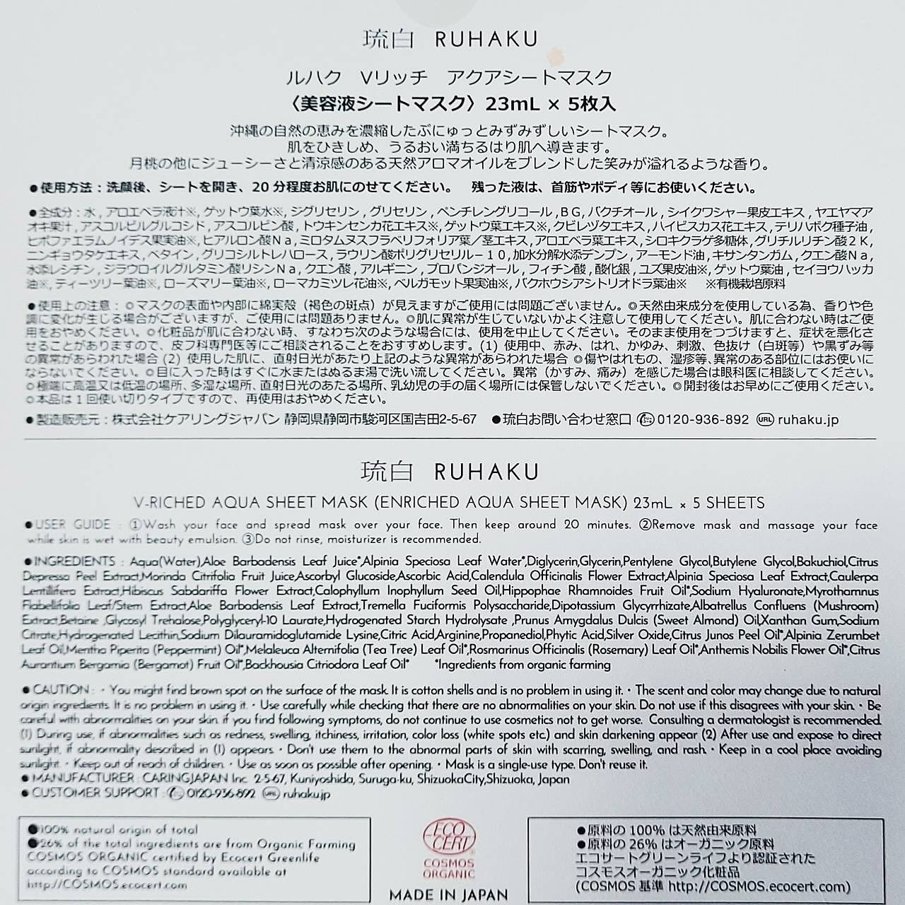 商品詳細情報琉白(ルハク) 琉白 Vリッチアクアシートマスク