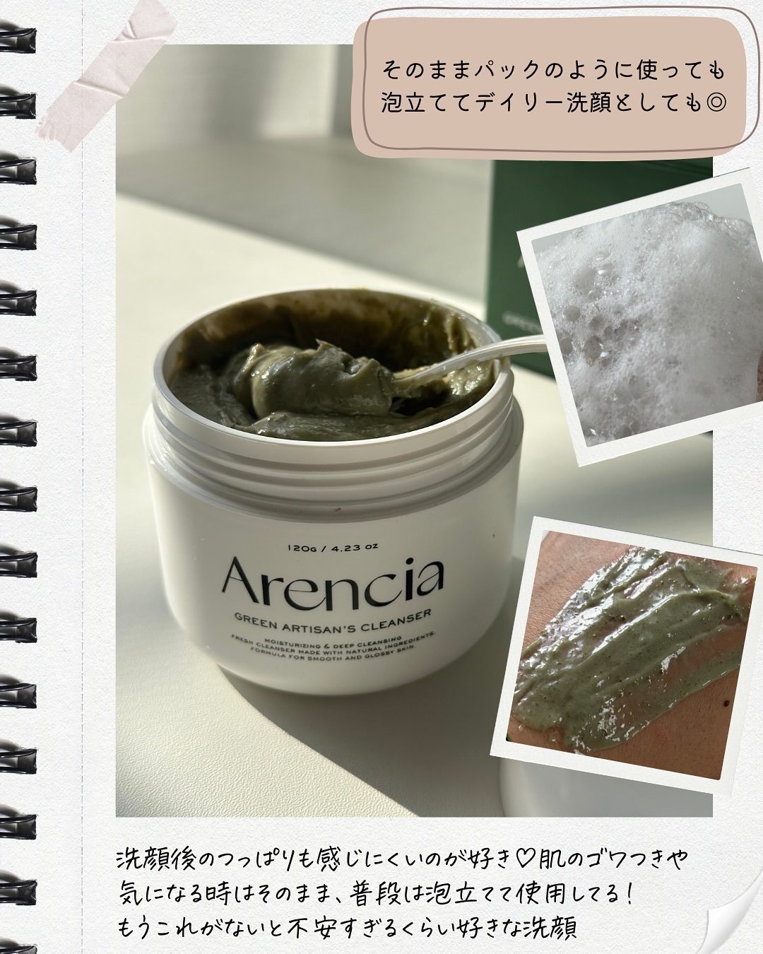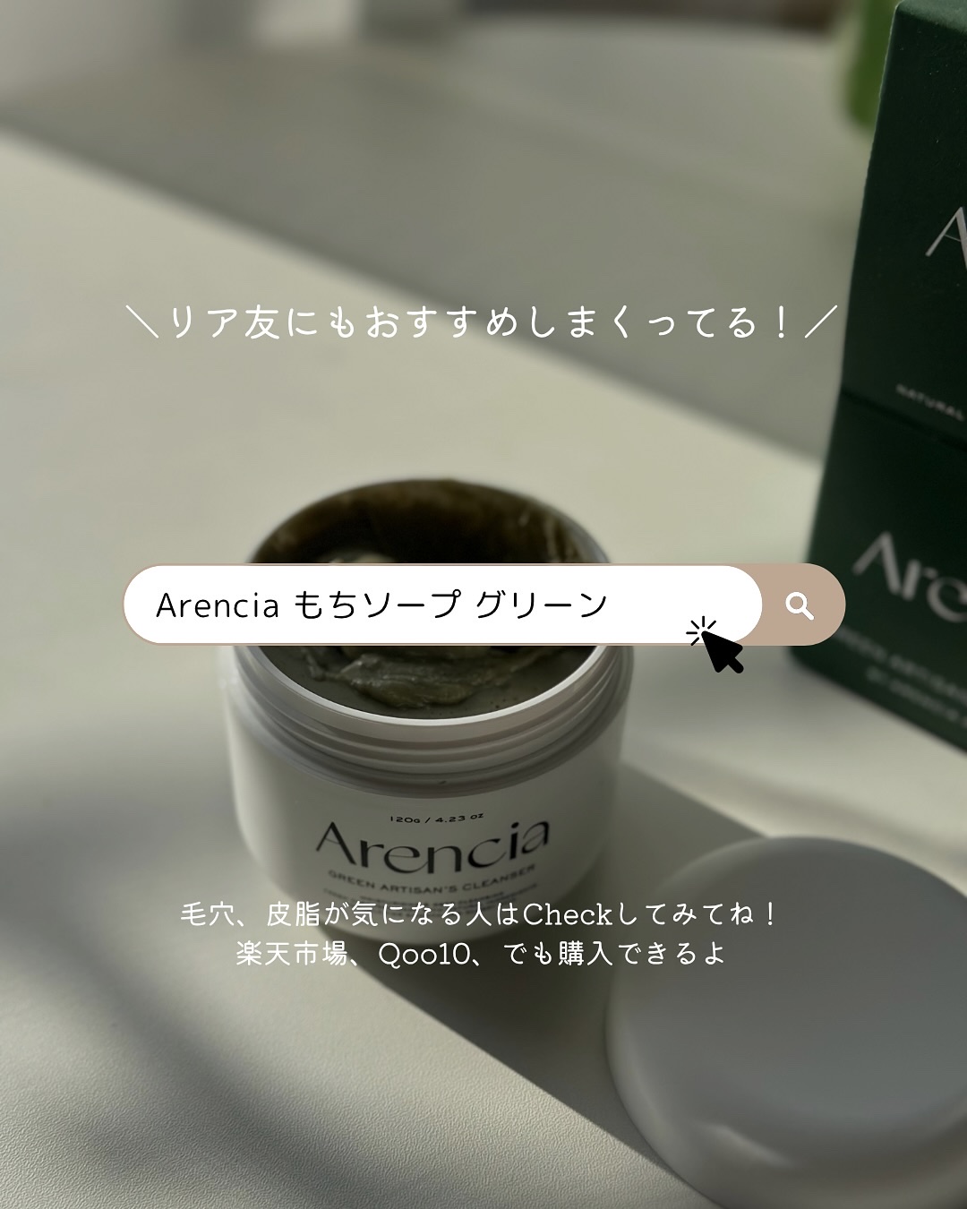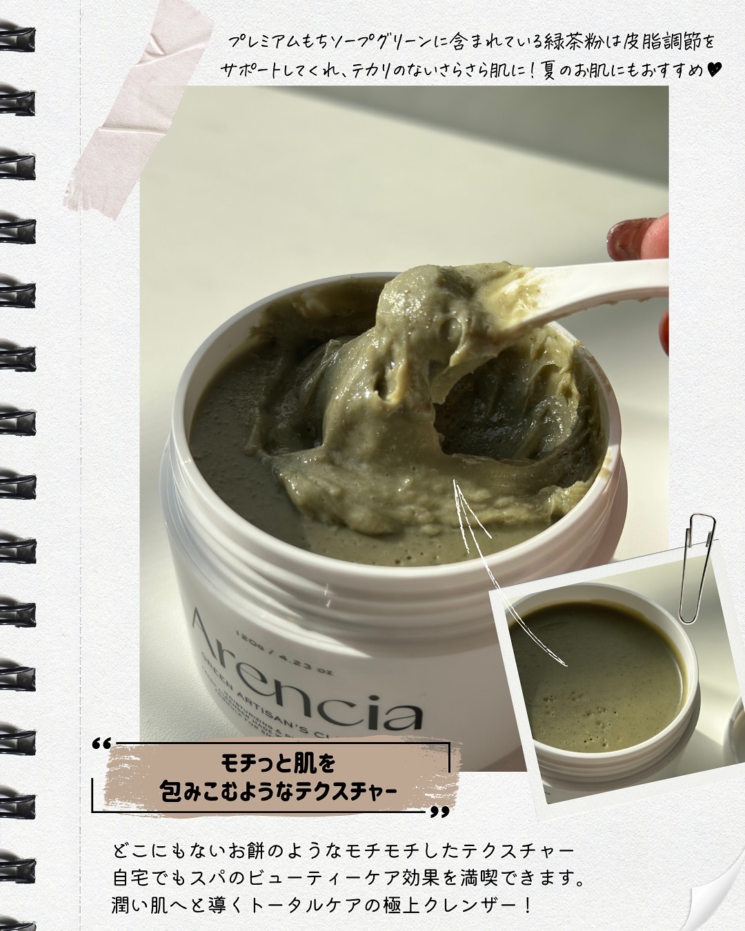 アレンシアの人気すぎるグリーンのもちソープ!パックでも使えるし、洗顔としても使えてなにより質感がすごく変わってて、ほんともっちもち!! つきたてのもちみたいに伸びる!まじで今まで見たことない質感?触感! 緑茶粉が含まれてるんだけど、皮脂調節をサポートしてくれて、テカリのないさらさら肌に導いてくれるよー!