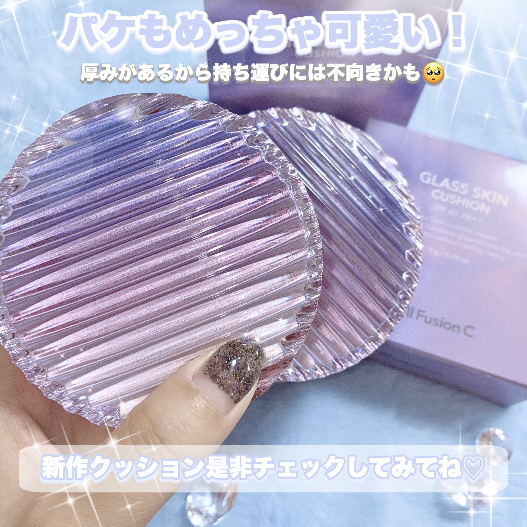 PR▷セルフュージョンCグラススキンクッション19Cゆめかわパケにときめく💜ツヤ肌仕上がりが好き、けど崩れにくいクッション求めてる方にぜひ推したい!厚塗り感なく、赤みや毛穴・薄めのシミ等カバー✨️濃いクマもある程度🙆🏻♀️70%スキンケア成...