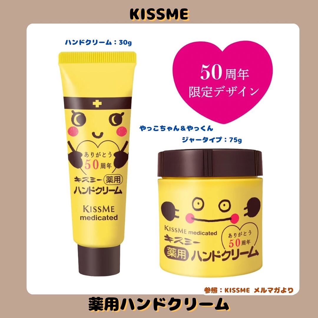今年で50周年🎉キスミー薬用ハンドクリーム@kissme_pr@cchannel_lemonsquare携帯に便利なミニチューブタイプ有効成分と保護成分のW効果でハンドケアしてくれてしっとり保湿効果8時間キープ∗ビタミンE(有効成分)配合で荒...