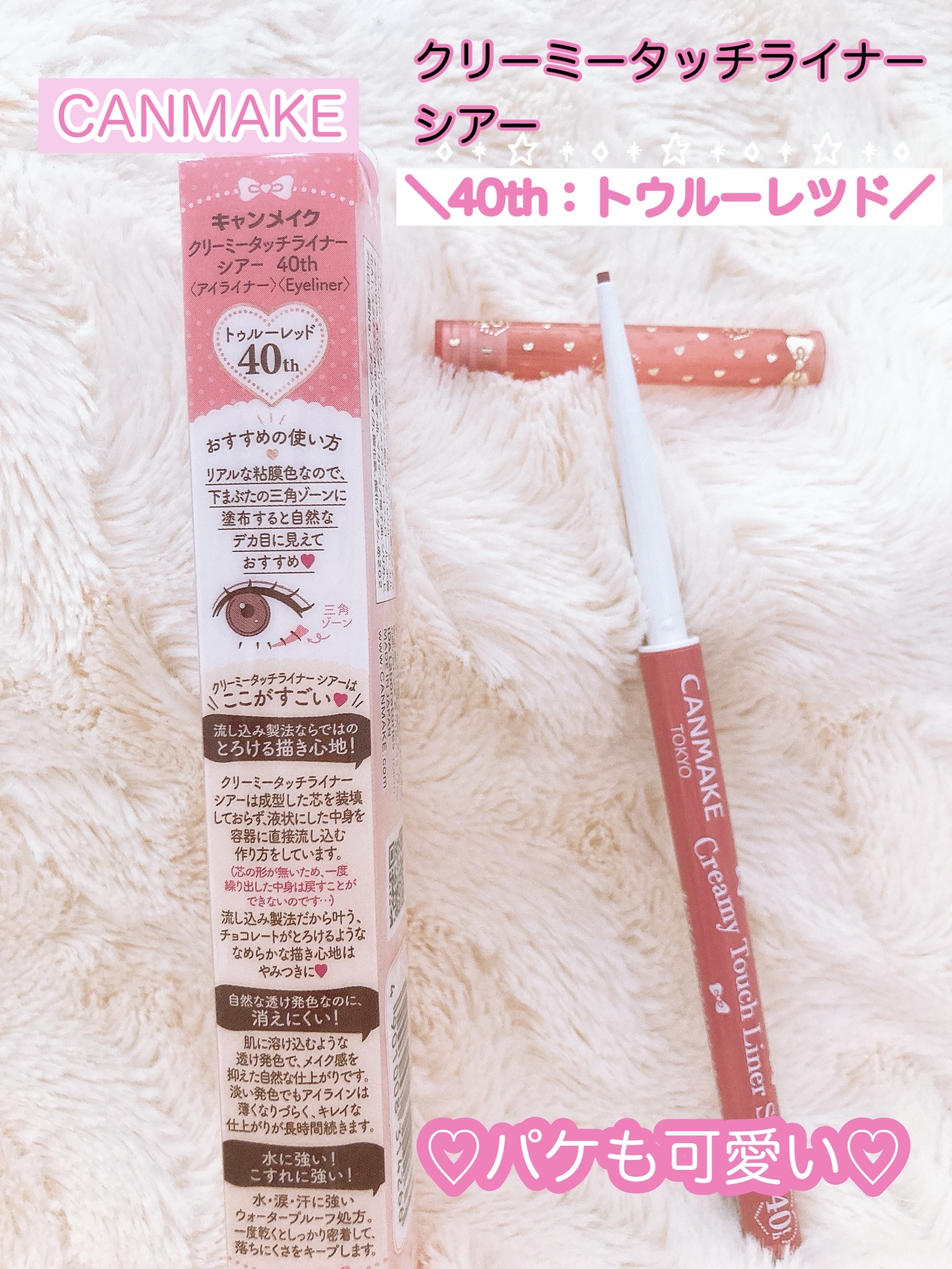\神ライナーのシアー発売🩷🤍/「キャンメイク」さまから商品提供をいただきました。・CANMAKEクリーミータッチライナー シアー40thトゥルーレッド¥715とろけるような描き心地、しかも落ちにくいジェルライナー🩷自然な透け感がリアルな粘膜カ...