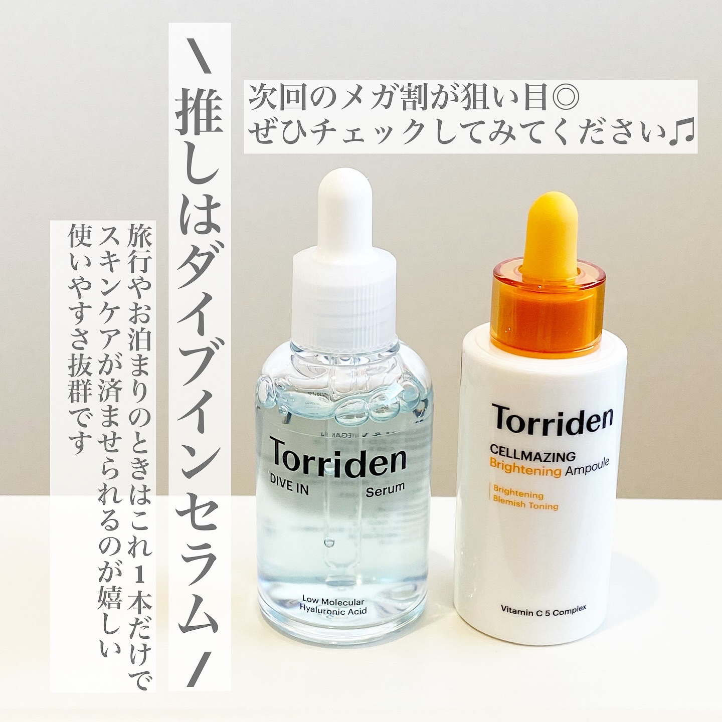 ✼••••✼TorridenダイブインセラムセルメイジングビタCアンプル✼••••✼Torridenの大人気セラム2種✨\水分+ビタミンC*¹ケア/🩵ダイブインセラム︎︎︎︎☑︎5種のヒアルロン酸*²配合で角質層までうるおいチャージ✨︎︎︎︎...