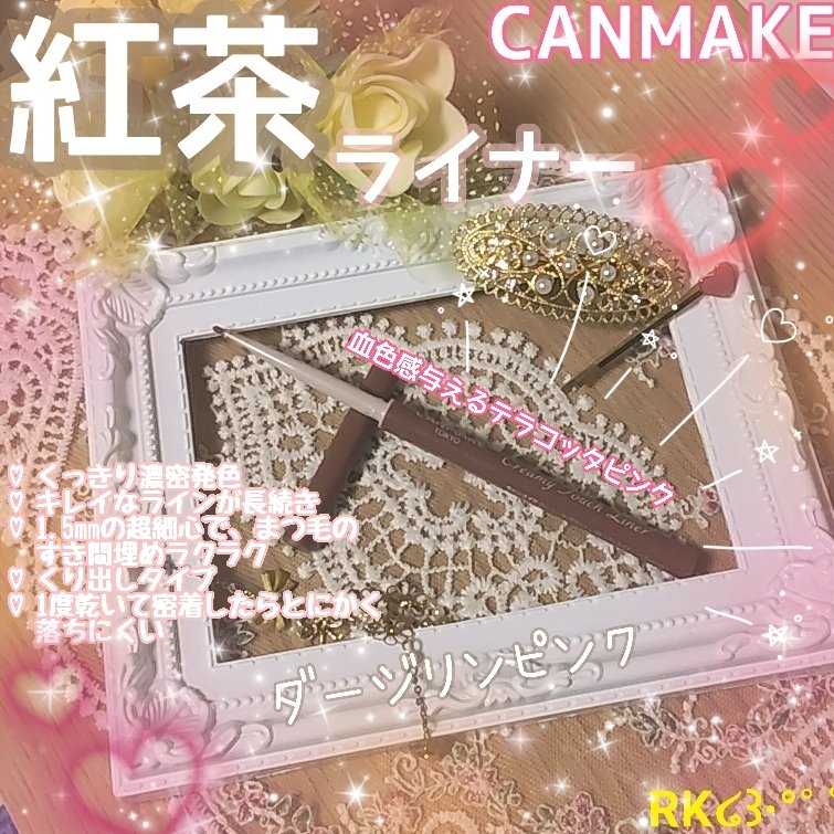 とろける描き心地❤️1.5mmの超極細ジェルアイライナー✨何回もリピしてるCANMAKEのクリーミータッチライナー🥰使用したのは09ダージリンピンク🩷血色感を与えるテラコッタピンクで優しくて抜け感のある印象になれます✨1.5mmの超極細芯のく...