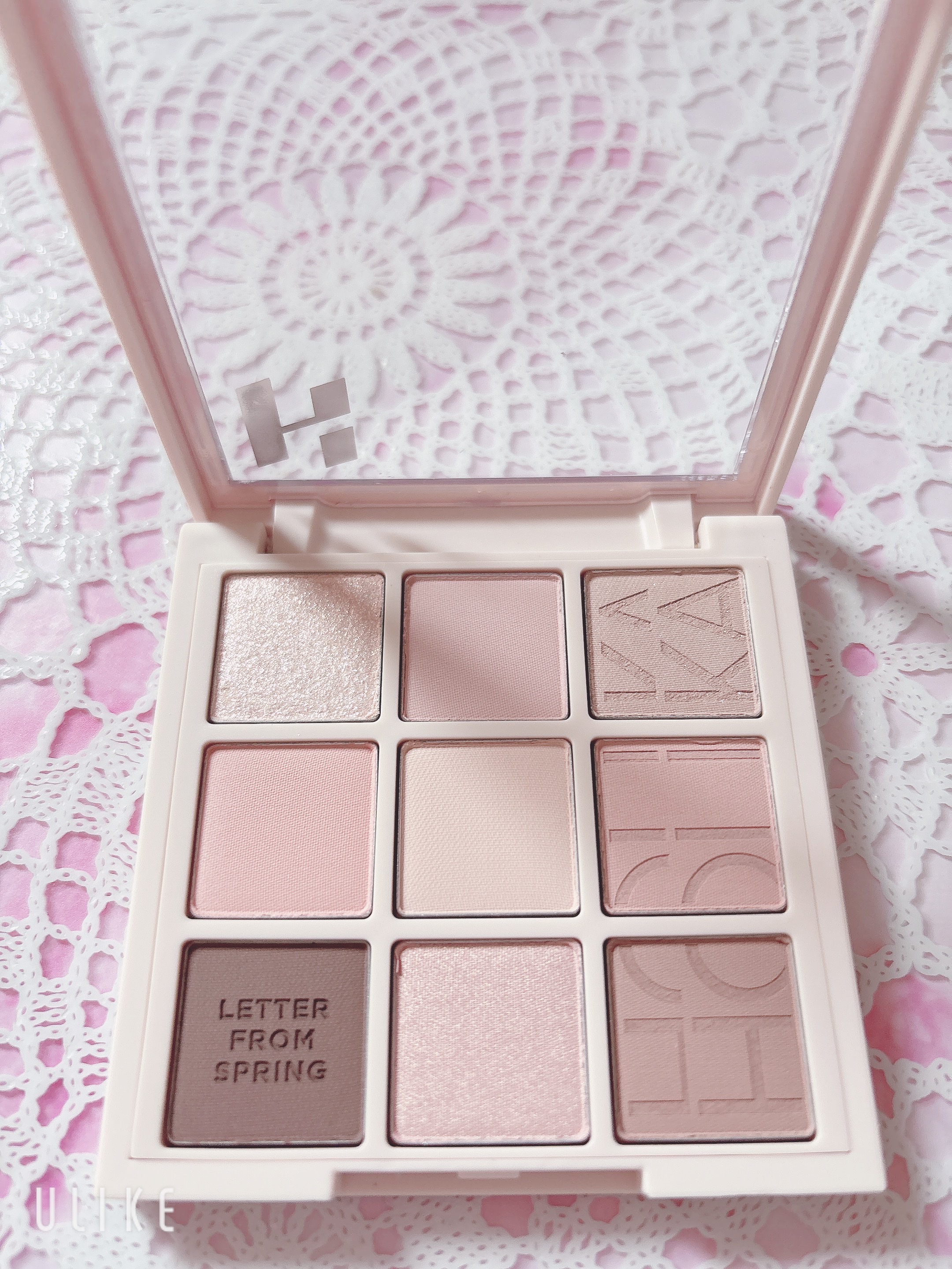 HOLIKAHOLIKAマイフェイブムードアイパレット9カラー09レターフロムスプリングLETTERFROMSPRING ¥2,970Qoo10メガ割で少し安く購入使いやすいと思うのがラメです。細かくてきれいです。全体としてはマットにキラキ...