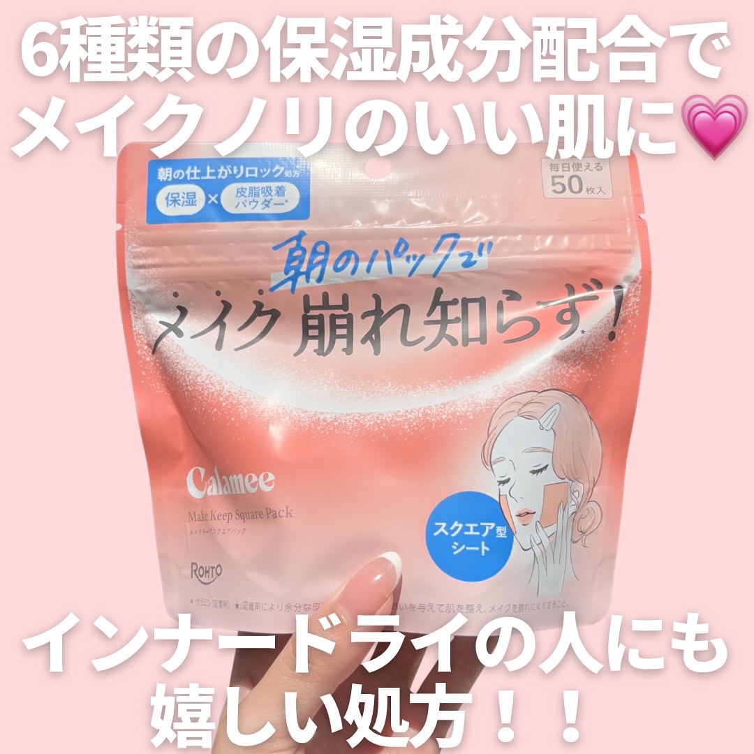 _朝の仕込みでメイク崩れしにくく【Calameeメイクキープスクエアパック】🫶メイク前に気になる部分へちょんっと貼るだけでテカリレス&崩れ対策にぴったり🫧6種類の保湿成分でメイクノリをよくしながらカラミンパウダーが余分な皮脂をおだやかに整えて...