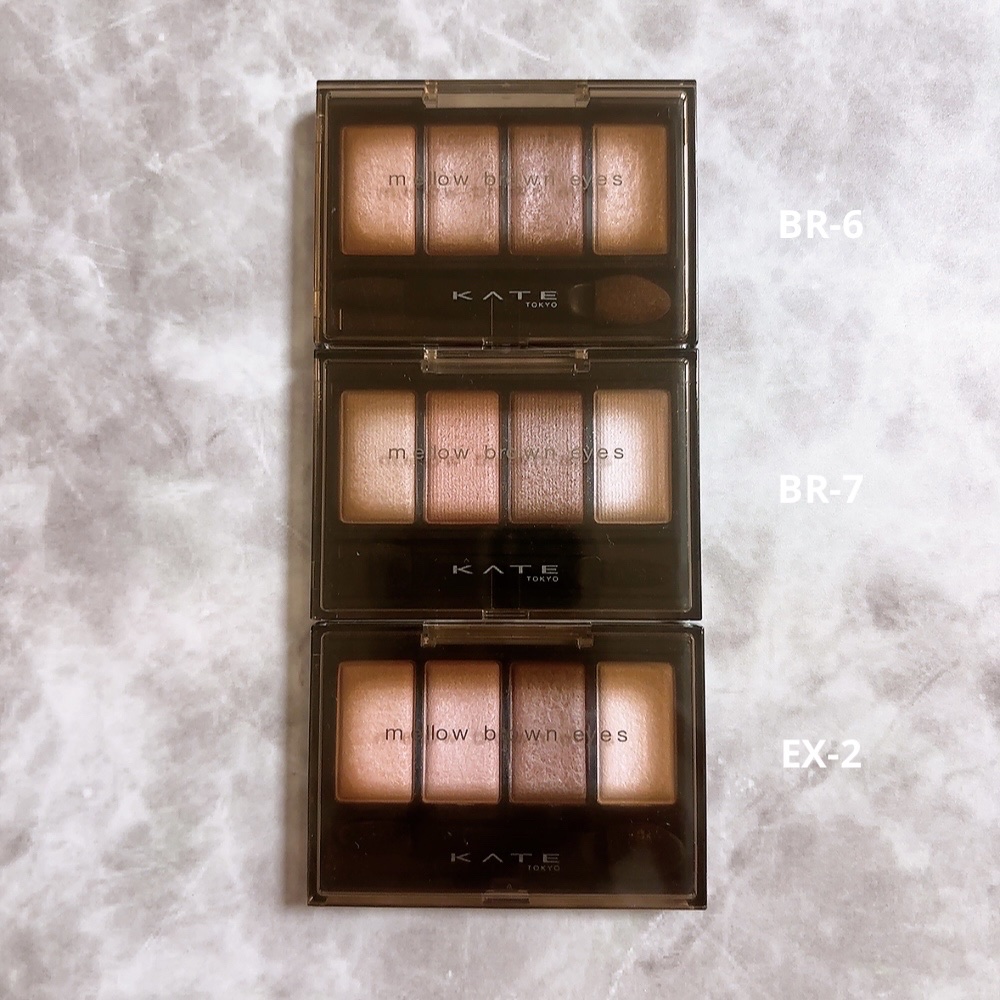 KATEケイト メロウブラウンアイズを3種類購入したので色味の比較をしてみました💕 BR-5コーラルブラウンはコーラルとなってますが少しブラウンを強めに感じます。 BR-7ソフトピンクブラウンは名前の通りピンクだけど柔らかいピンクです。