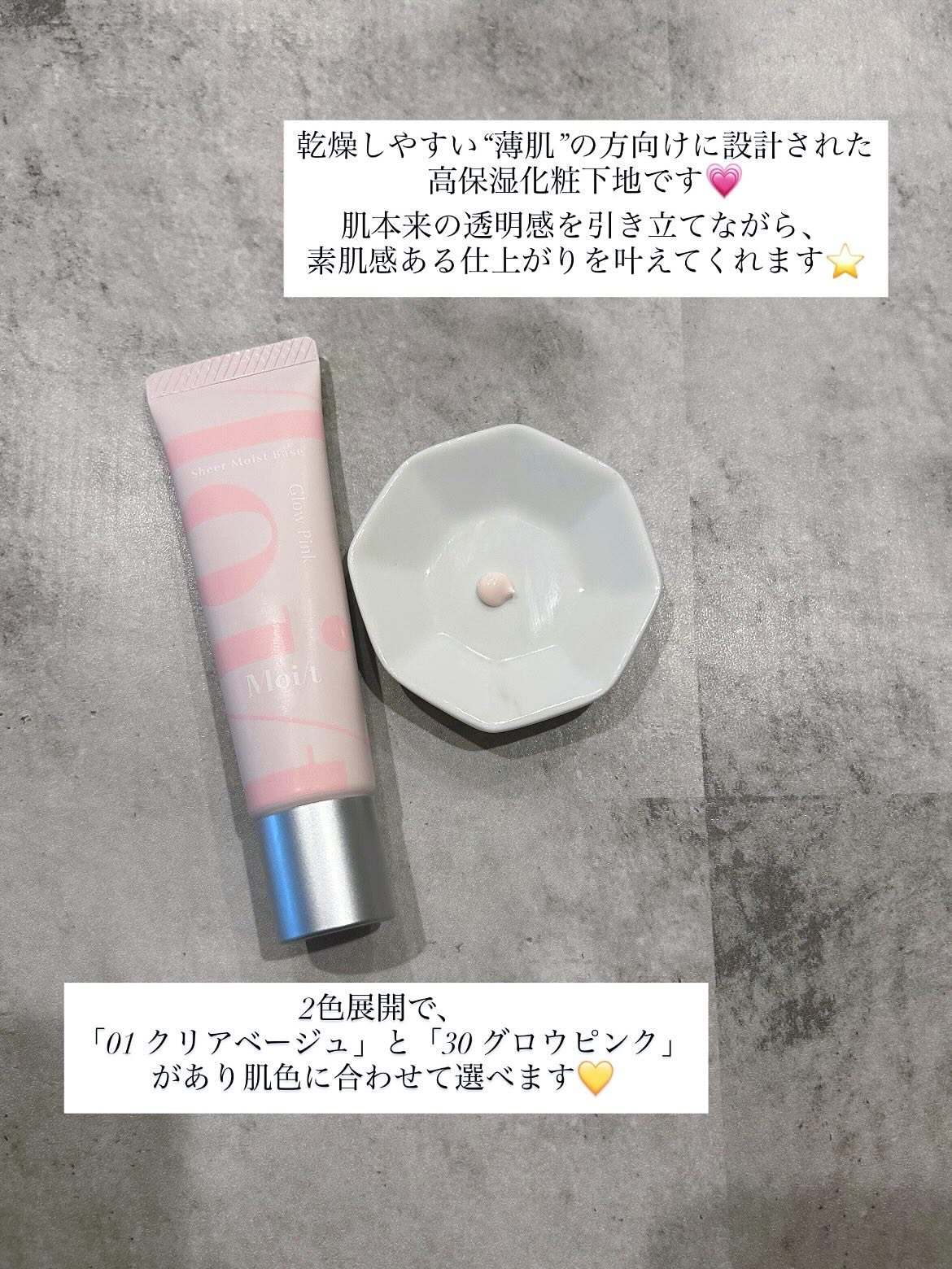 乾燥に悩む薄肌さんのために!!エリザベス🫧✨モイット シアーモイストベース♪お色味が2色展開で私は01のクリアベージュ\(◡̈)/♥︎こんな下地に出会いたかった⁉︎部分的にすごく乾燥する肌質で頬や眉毛の上らへん結構粉吹くんです😭💦それがこのベ...