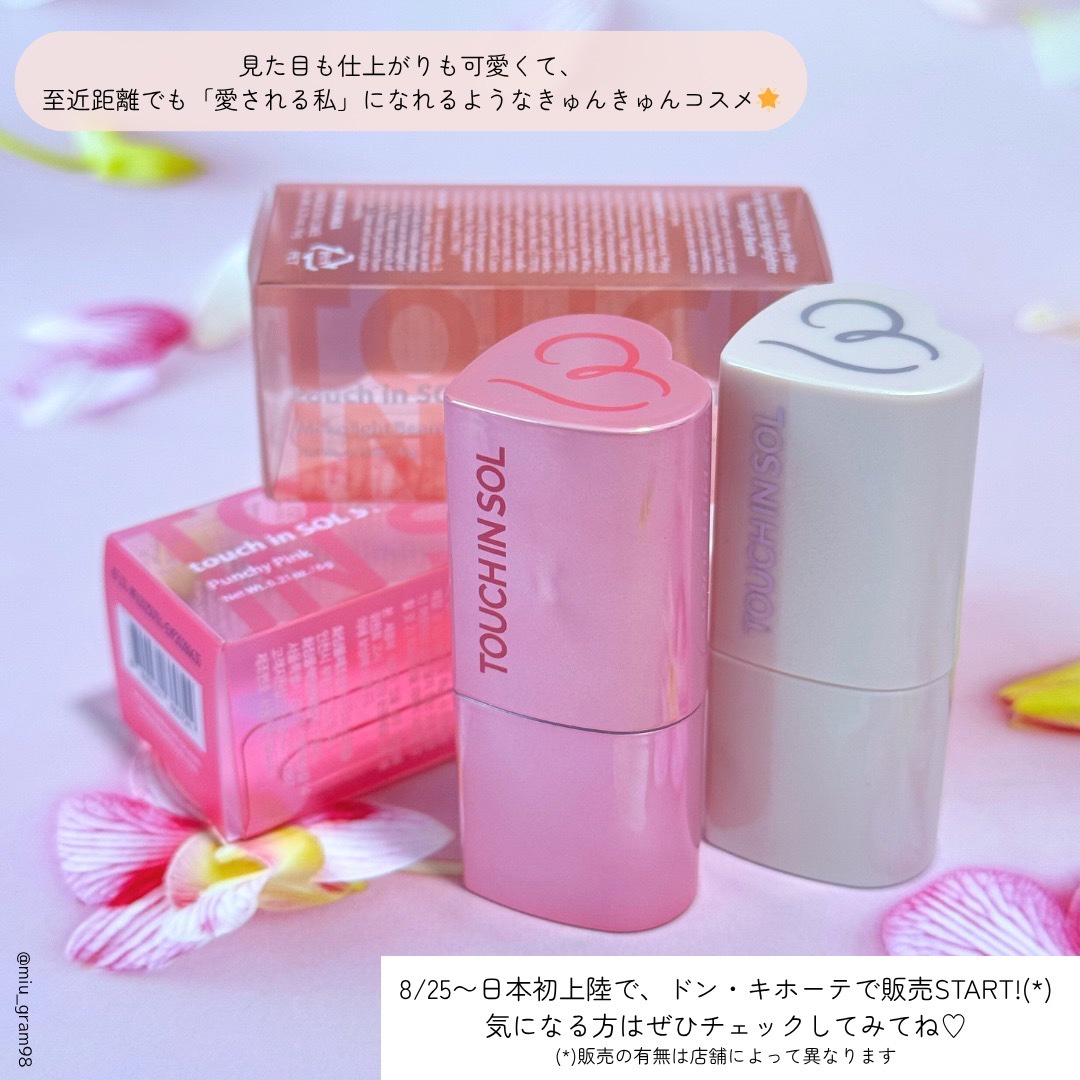 ハート型チーク❤︎・・touchinSOLのプリティーフィルターインマイハートスティックチークはハート型のスティックになっていて頬にポンとハートのスタンプを押すようにのせたらあとは指やスポンジで馴染ませるだけで うるツヤメイクが簡単に作れて便...