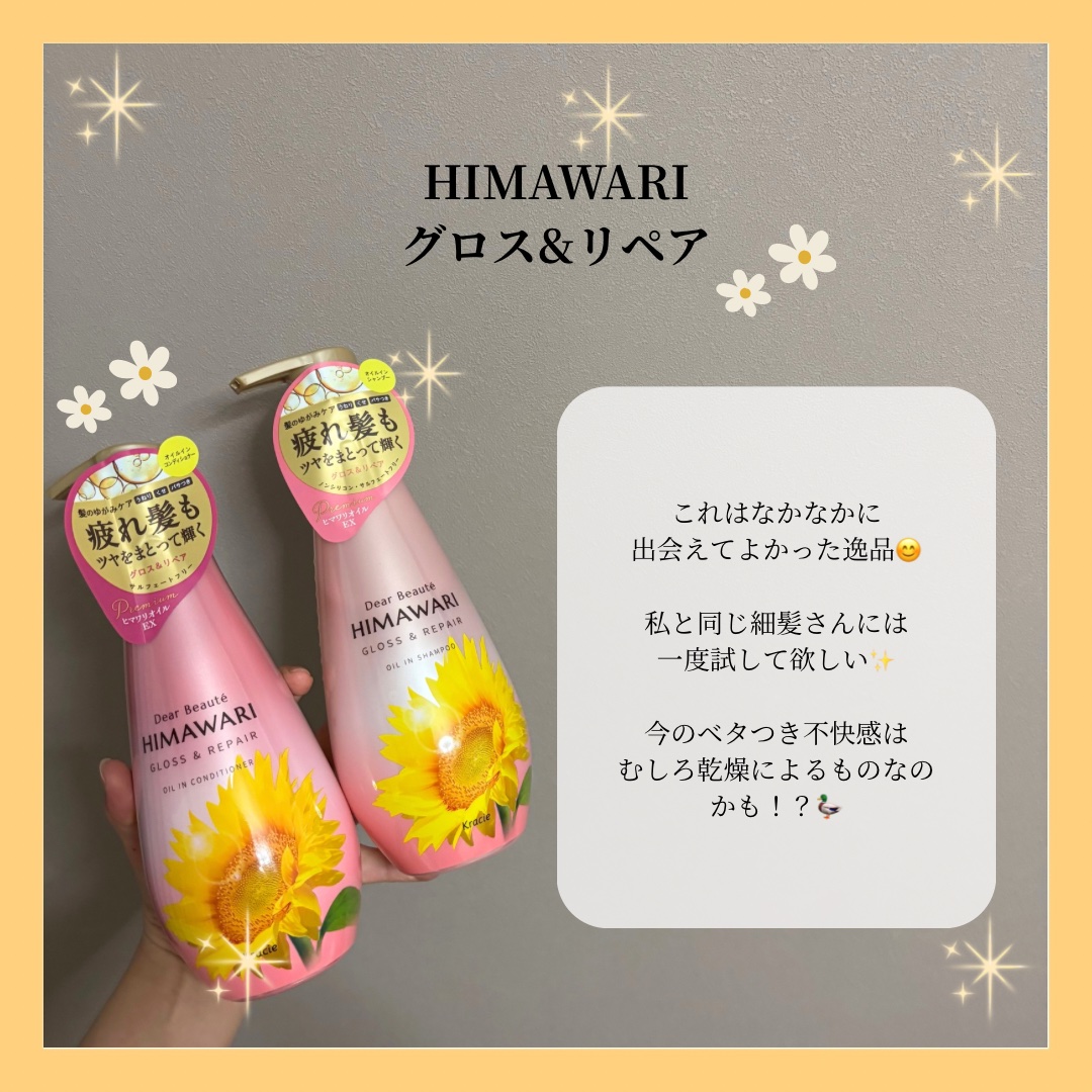 ディアボーテさまの🌻オイルインシャンプー🌻オイルインコンディショナー使わせていただきました!シャンプーは︎︎︎︎、透明な見た目でなめらかなとろみのあるテクスチャー!泡立ちが良くふんわりとした濃密泡でした!私は髪が細くパサつきが気になるのでうる...