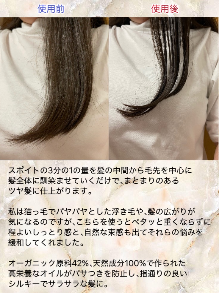 | 毛先だけじゃなく、髪全体に使えます🥰 自然にまとまって、ツヤっとした髪に✨ | 詳細を見る | ||
