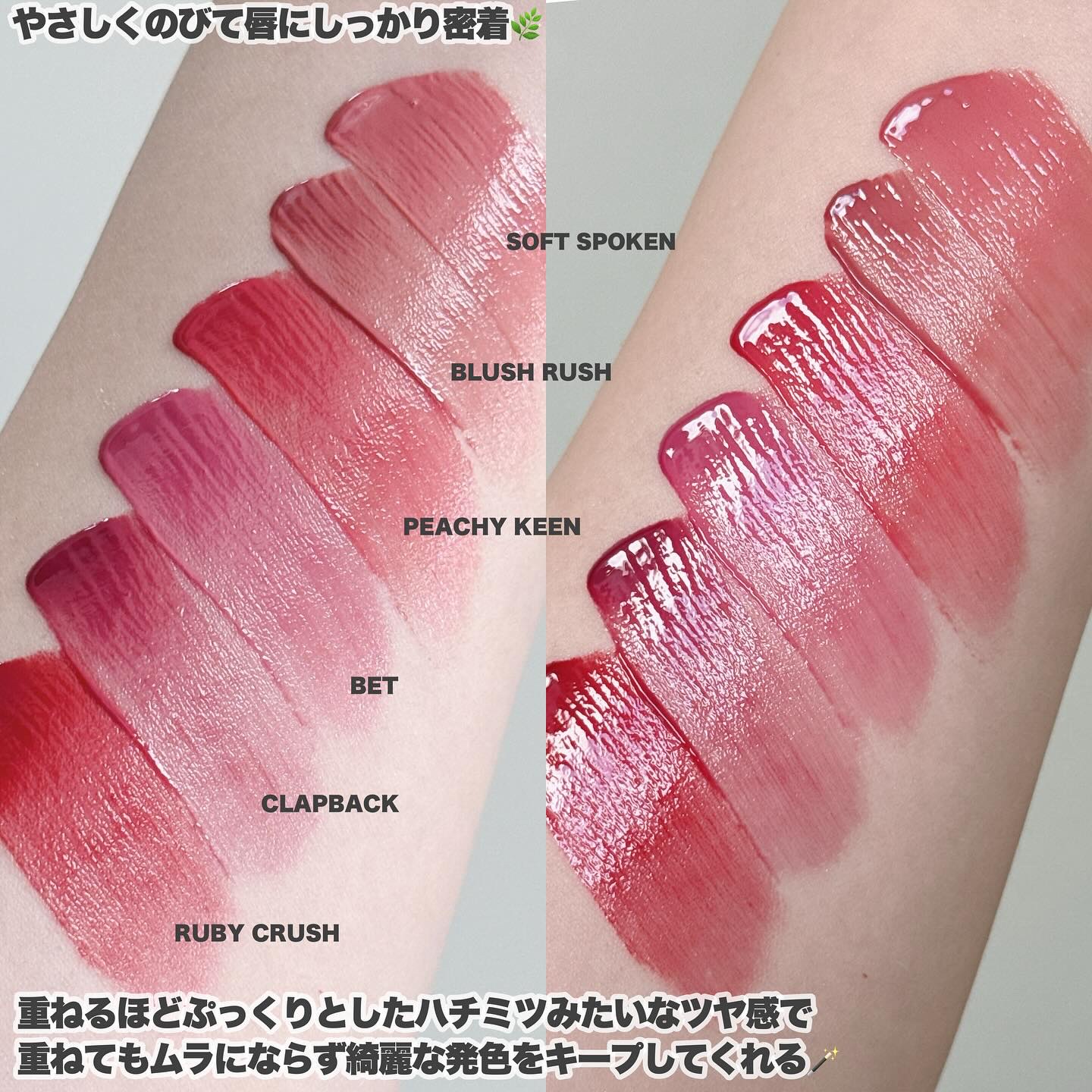 | リップティントランキング第3位 | 重ねて塗っても、ちゅるんと透け感が残って明るめカラーがとっても映える…💕色残りも◎ | 詳細を見る | ||