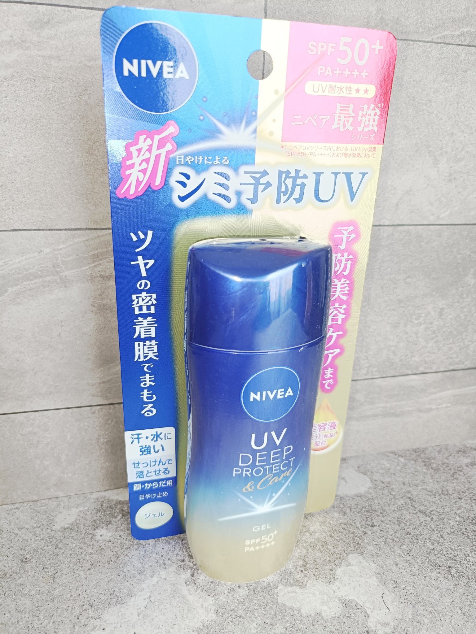 - 《DEEP PROTECT》 ・SPF50+/PA++++ UV耐水性★★ ・ニベア最強(*6)シリーズ (*6) ニベアUVシリーズ内における、UVカット効果(SPF50+/PA++++)および撥水効果において ・主にシミの原因となるUV-Bも、シミやハリ・弾力の低下の原因となるUV-Aもしっかり防ぎます。 ・スーパーウォータープルーフ 《Care》 ・予防美容ケア(日やけによるシミ予防)ができる ・日やけによるシミ・そばかすを防ぎながら、肌にうるおいを与えます。 ・美容液成分(保湿)配合:ジェル :金銀花エキス(スイカズラ花エキス)、真珠タンパク抽出液(加水分解コンキオリンタンパク)、ダマスクバラ花水、ヒアルロン酸Na、PG