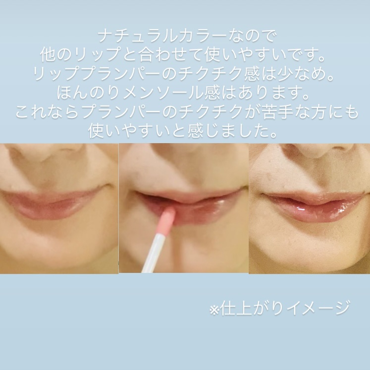 キューミーボムショットリッププランパーはチクチク感を余り感じなくてメンソールっぽい使用感で使いやすいですね👌 ナチュラルなカラーなので粘膜リップとしても使えるところが良いです◎ 夜はリップパックとしてたっぷり塗っています。 液垂れしにくい容器なのもポイント高いです💜