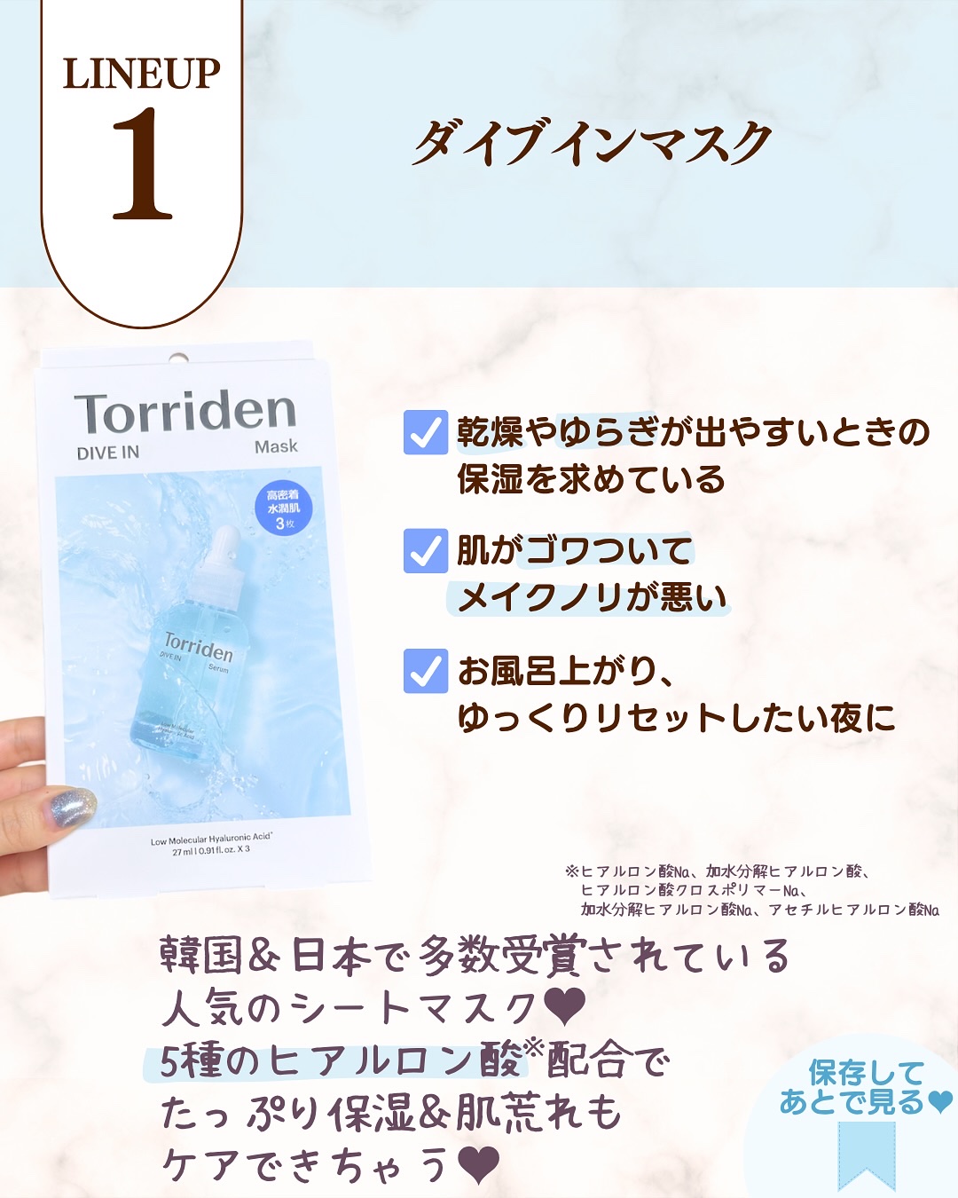 Torriden トリデン ダイブインマスクパック | 275円〜 |