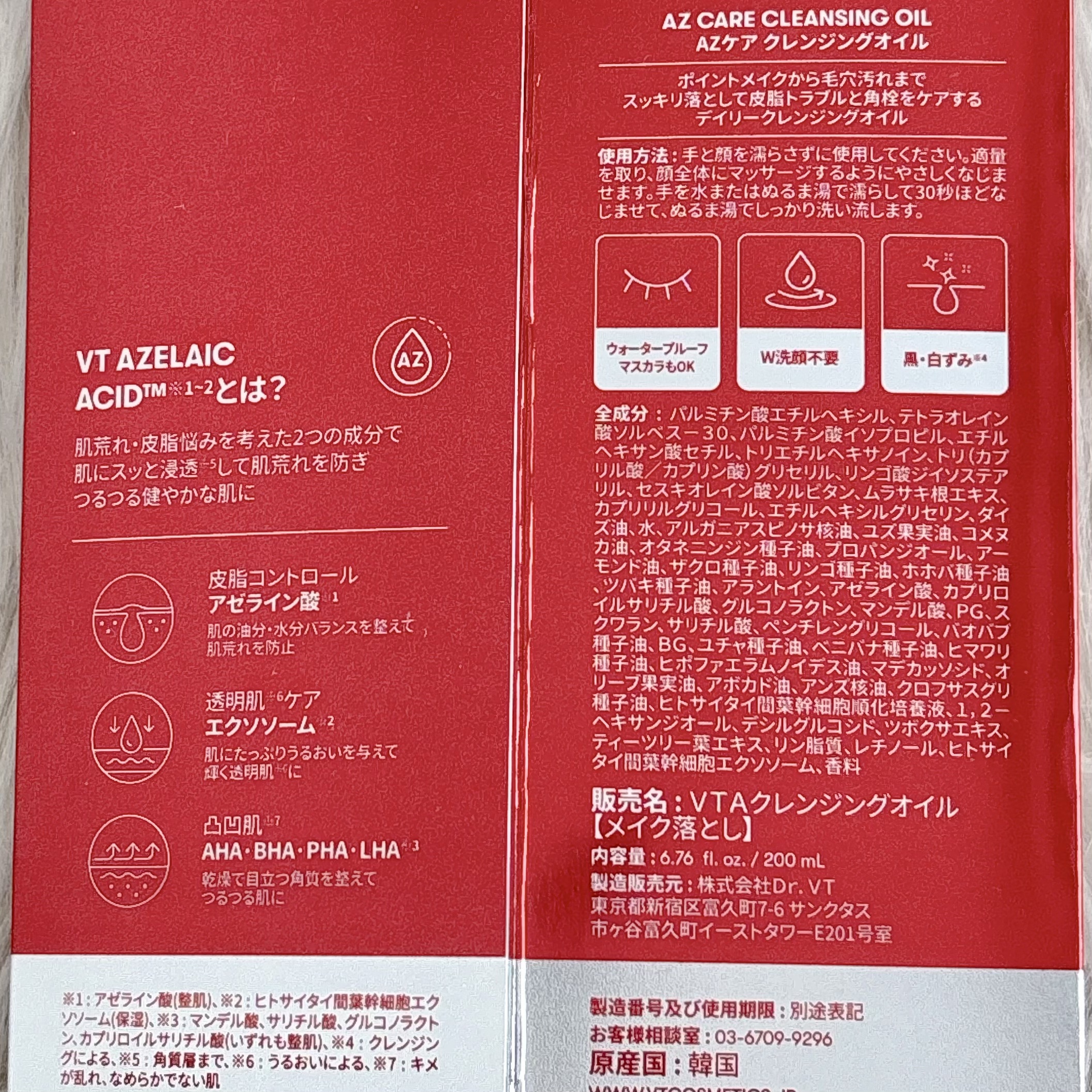 VTさまからいただきました。#ガチモニター_VTありがとうございます🥳✨————————————✿VTcosmetics AZケアクレンジングオイル✿————————————過剰な皮脂分泌を抑える高純度*1アゼライン酸*2と肌荒れを防止す...