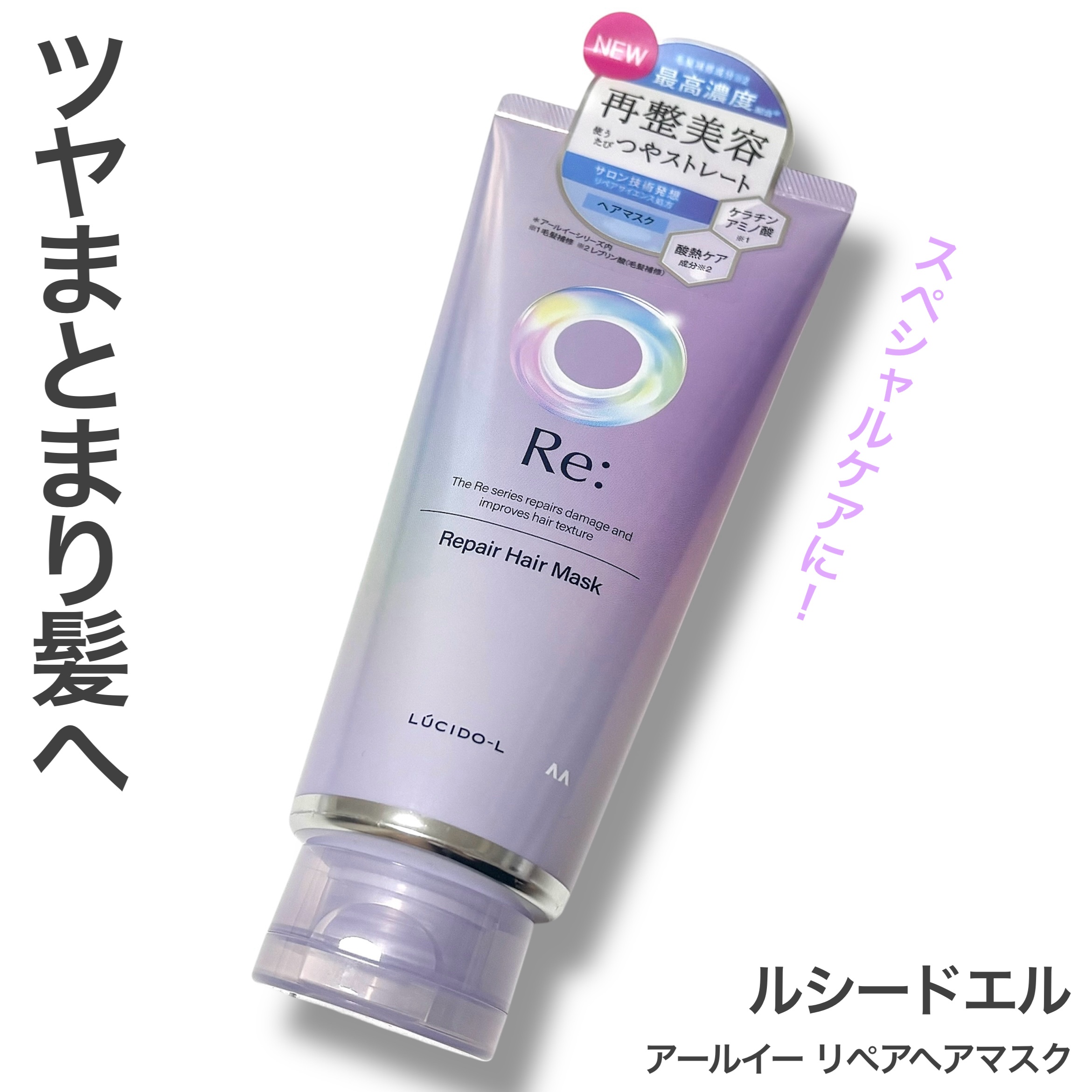 ルシードエルさまからいただきました。【アールイーリペアヘアマスク】✅2025/8/25にリニューアル発売サロン技術発想、毛髪補修成分※1最高濃度配合※2配合のヘアマスクです☑ドライヤー等による熱を与えることでヘアケア効果が促進され、毛先まで艶...