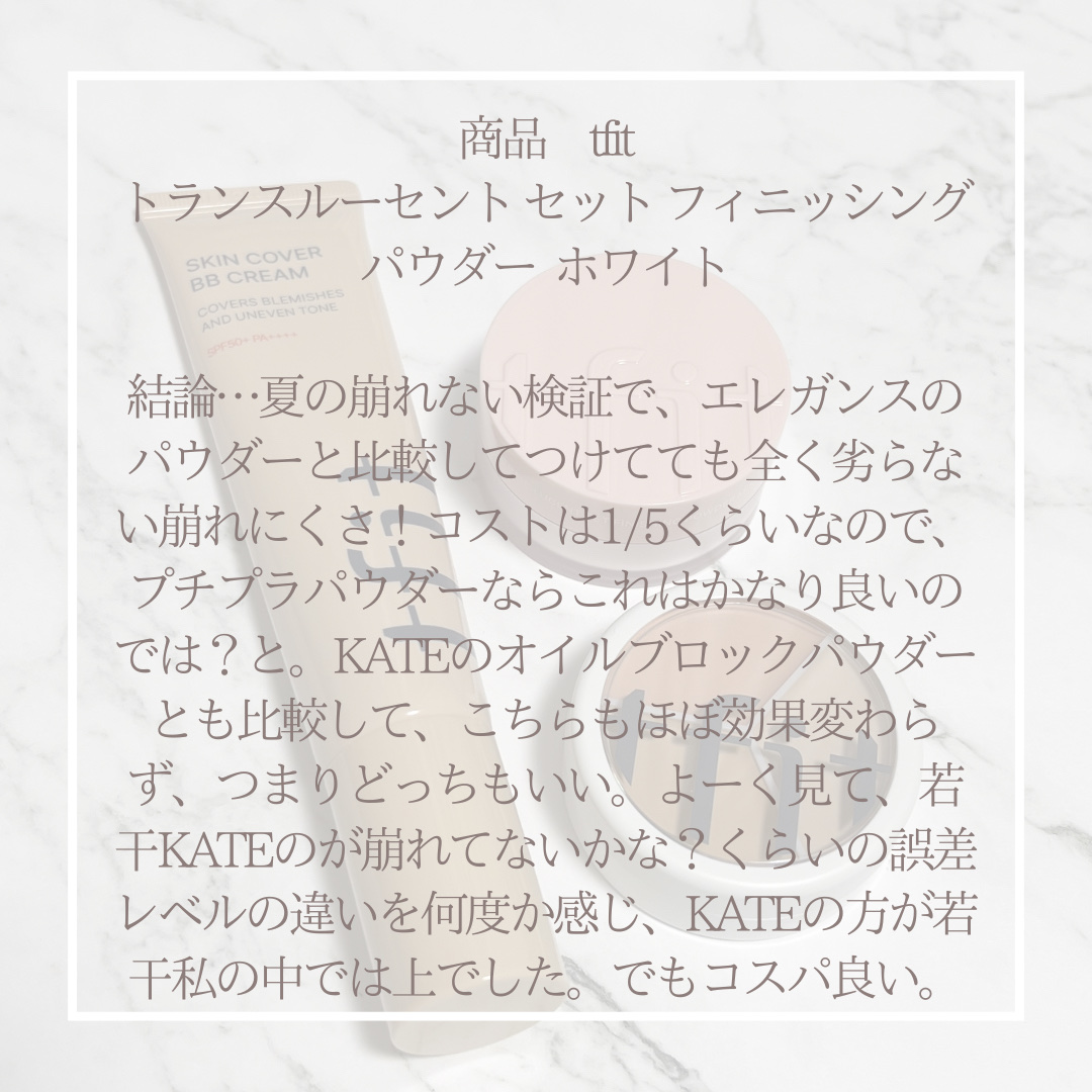 TFIT WhiteSkinBeige¥1,760トランスルーセントセットフィニッシングパウダーQoo10メガ割で購入混合肌でオデコ、鼻、顎がすぐテカるから悩んでたけどこのパウダーのお陰でテカる事が少なくなった👏パフも厚みがあってふわふわWh...
