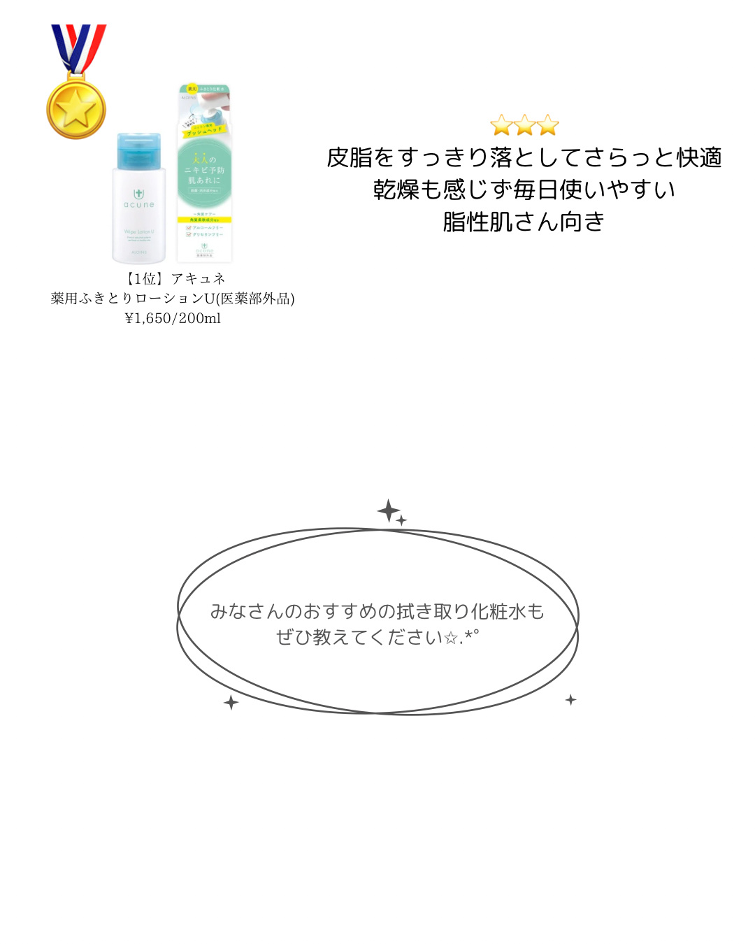 | 化粧水ランキング第112位 | ふきとりケアで肌の余分な汚れや皮脂を取ってくれるスキンケア♡ | 詳細を見る | |