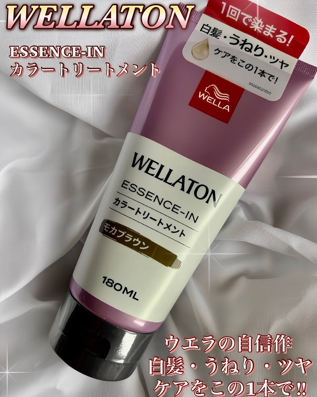 白髪が1回で染まる!ウエラ史上ベストバランスの処方へ新改良*5 髪全体にまとまりとつやを与える「輝きベールテクノロジー」 使用方法は、シャンプーの後に5分〜10分放置するだけなので、手軽にケア出来ます♦️
